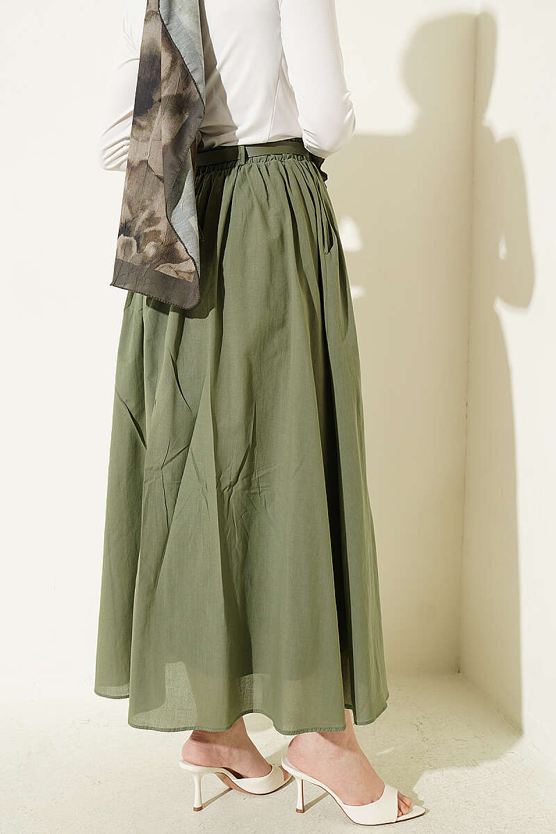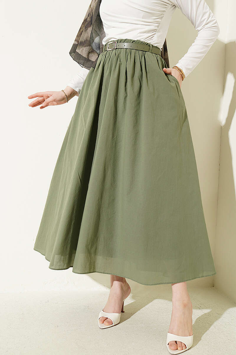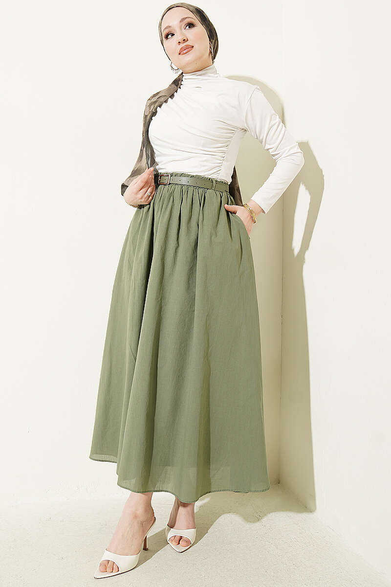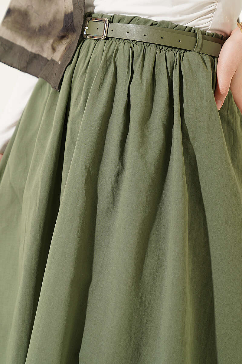 Kemerli Kloş Vual Etek Haki