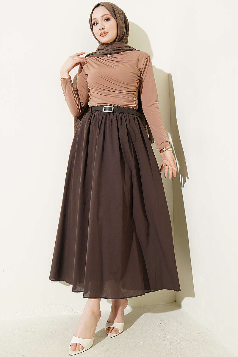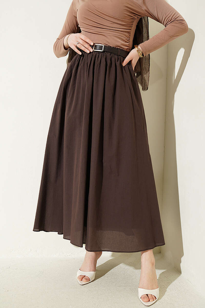 Beli Lastikli Kemerli Kloş Kot Etek Kot
