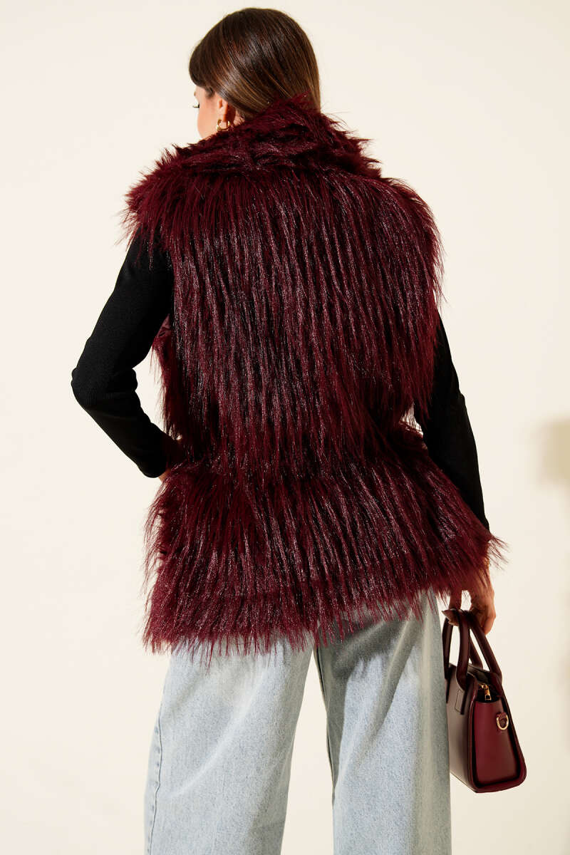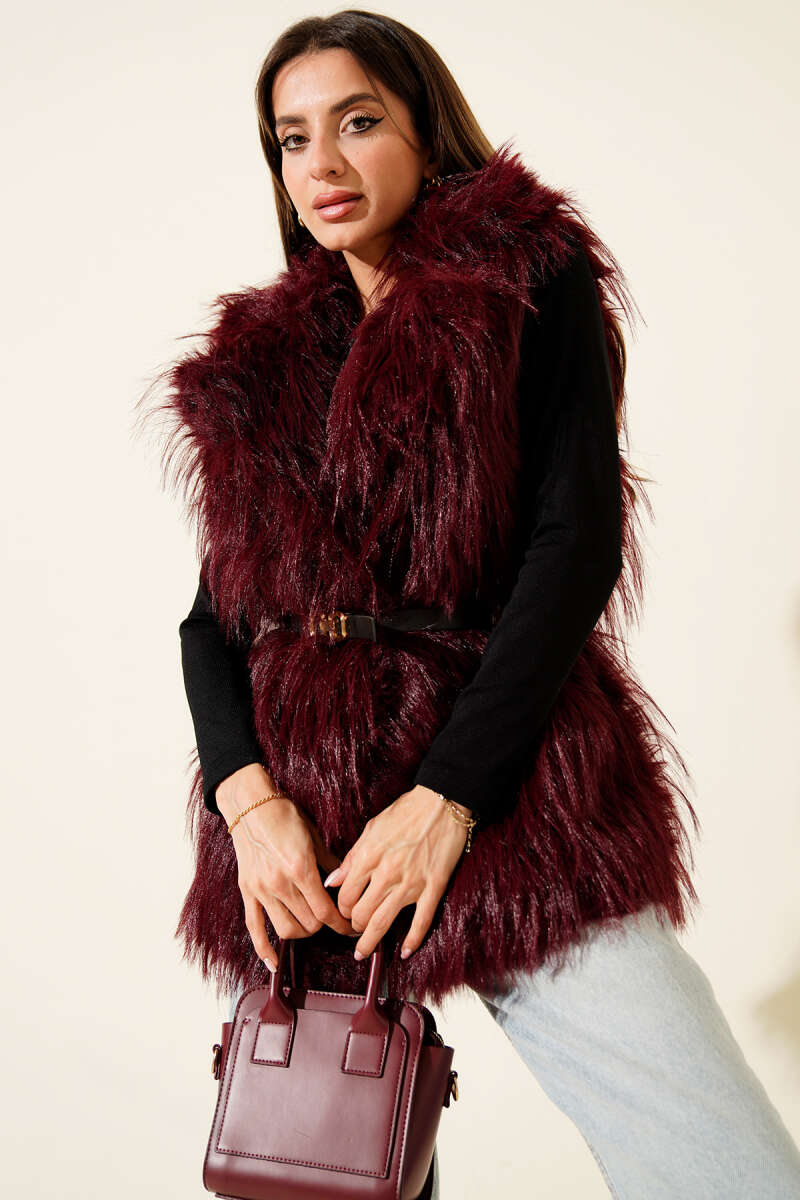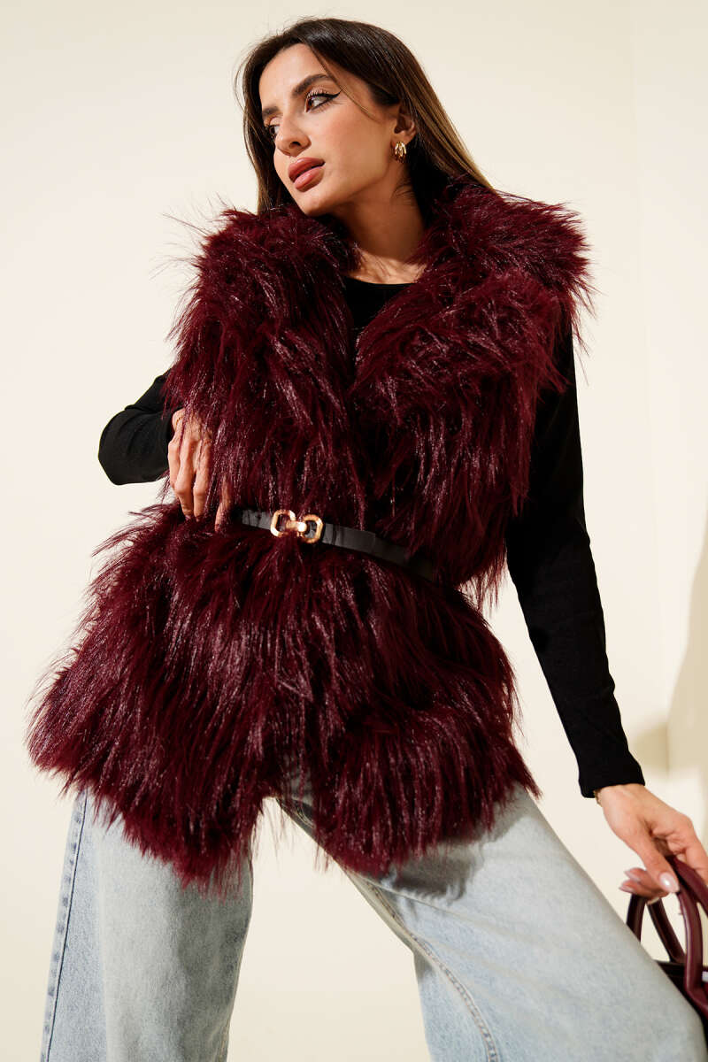 Kemerli Kürklü Lolita Yelek Kahve