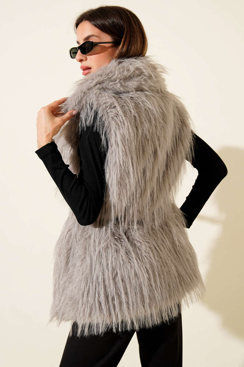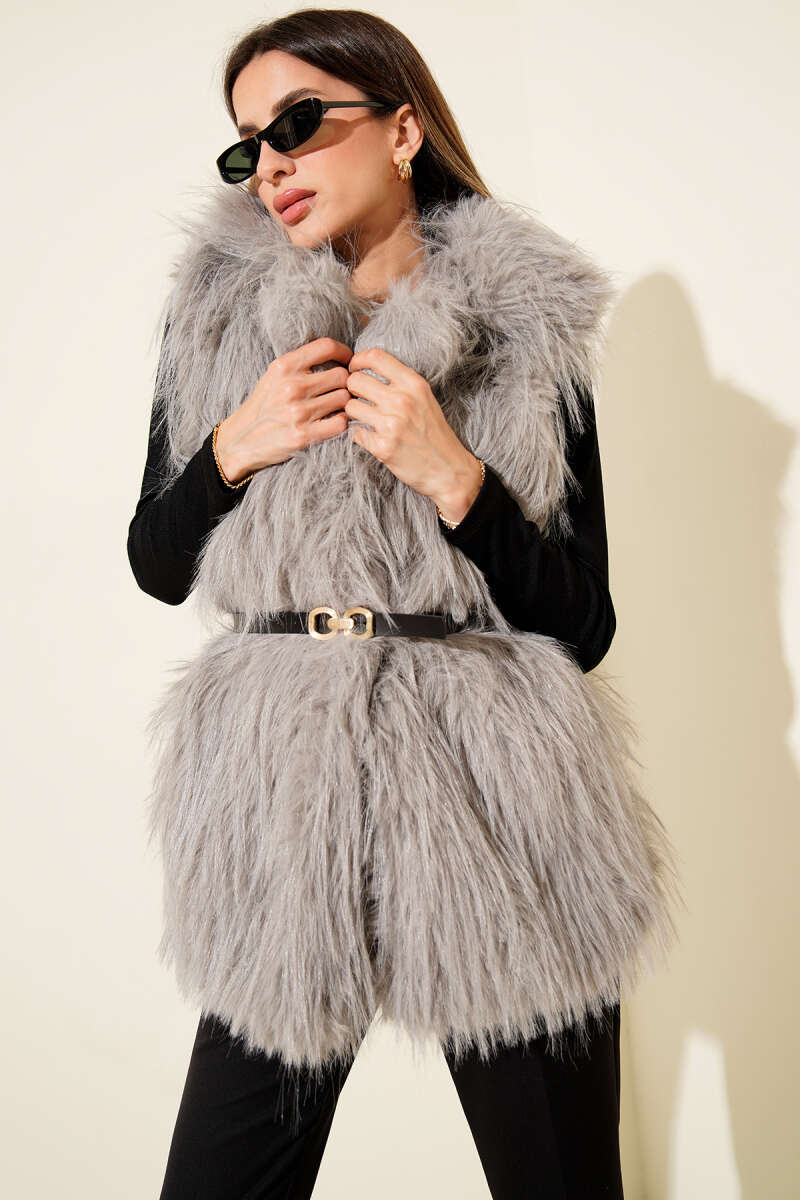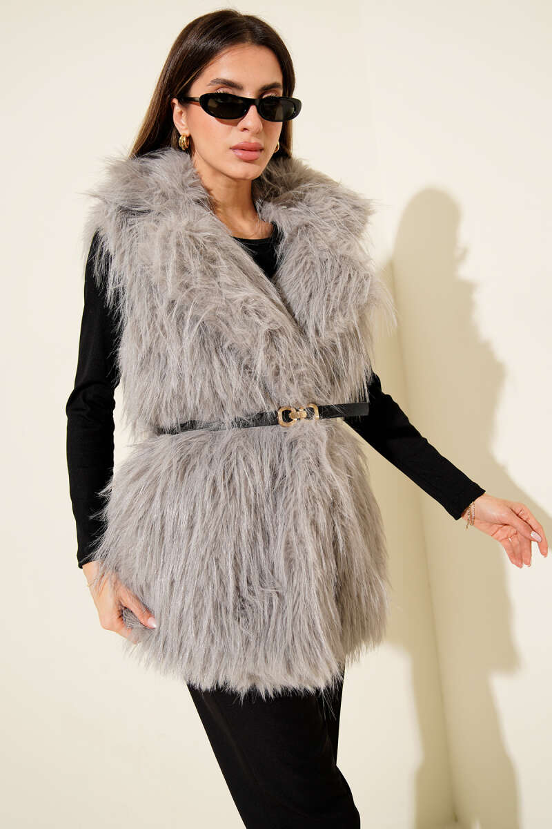 Kuşaklı Rüzgarlıklı Uzun Kaşe Kaban Gri