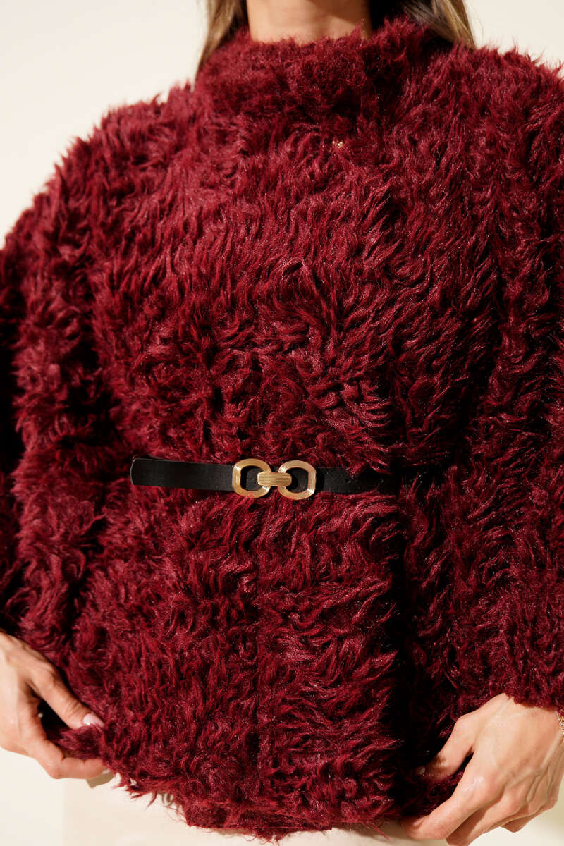 Kruvaze Yaka Deri Etekli İkili Takım Taba