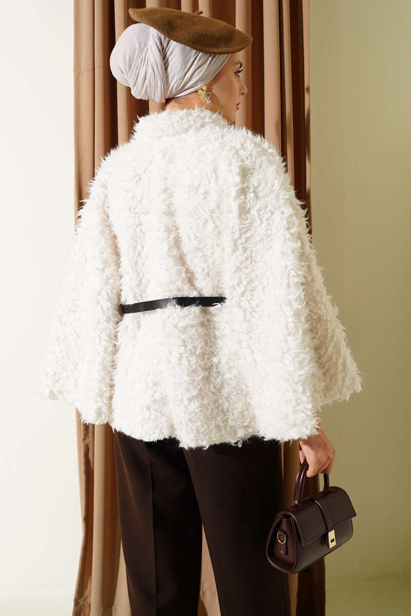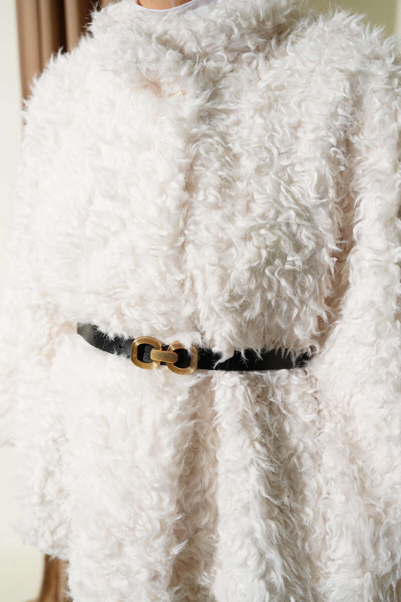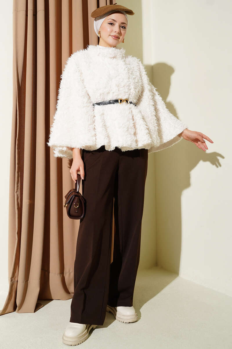 İnce Kemer Detaylı Kaşe Panço Acı Kahve