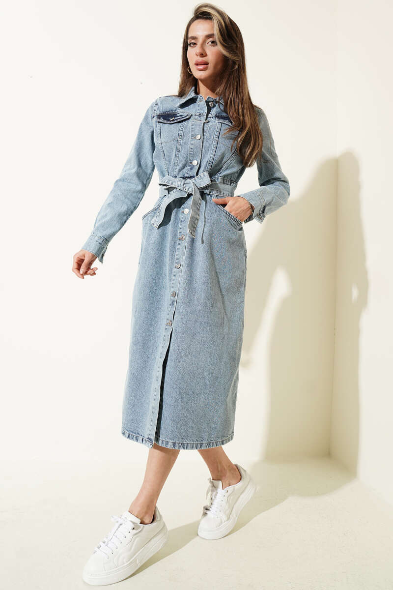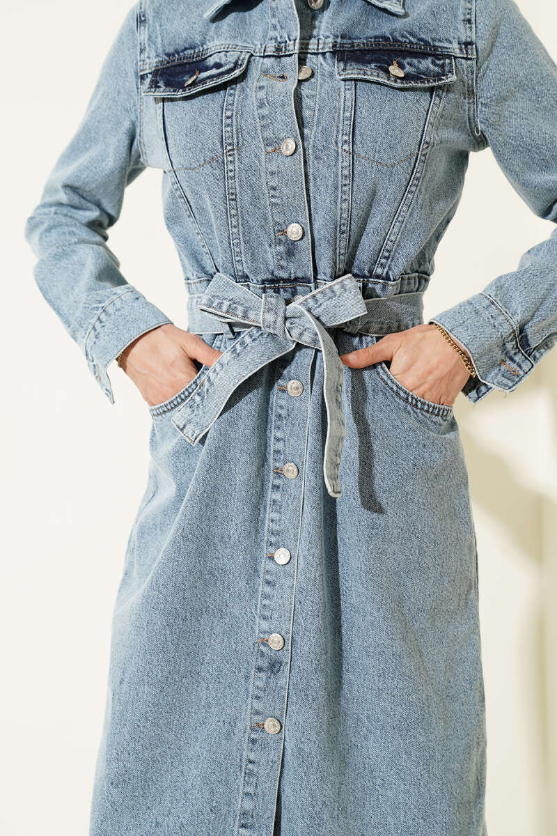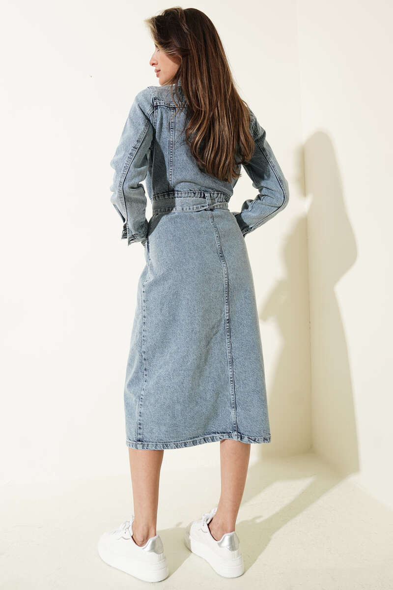 Seyyar Etekli Mini Kot Elbise Kot Mavisi