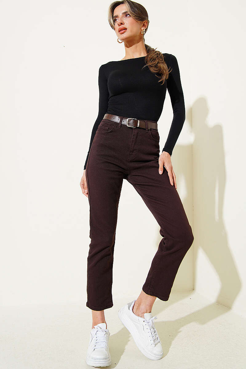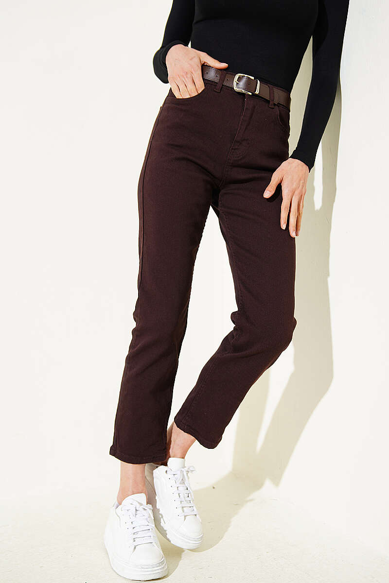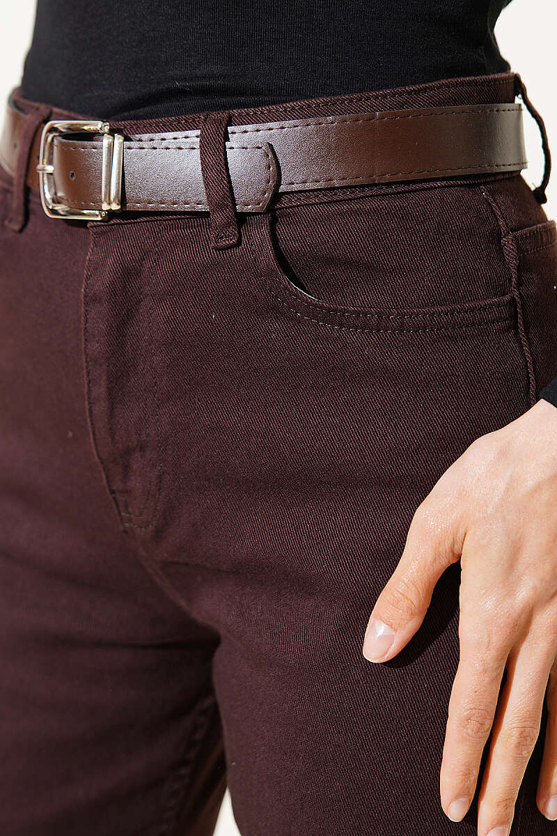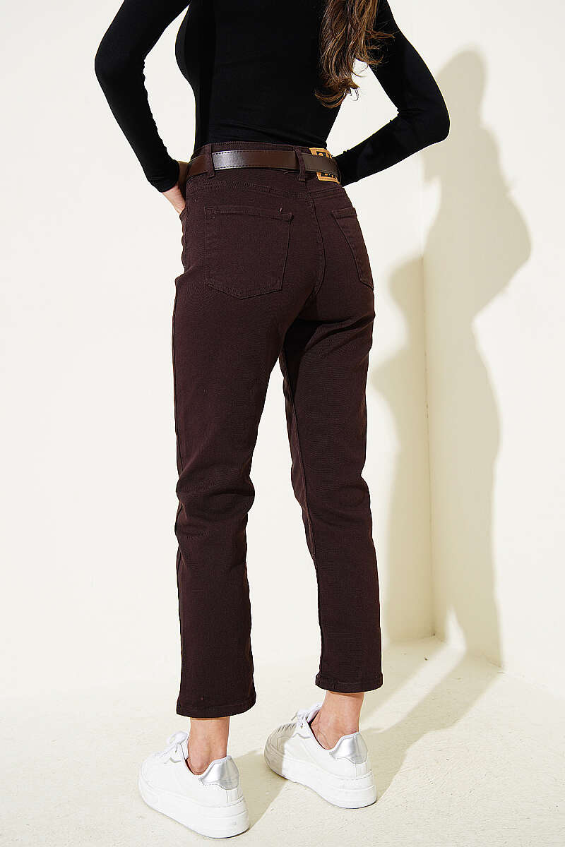 Cepli Kemer Detaylı Kot Pantolon Kahve