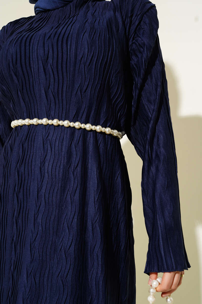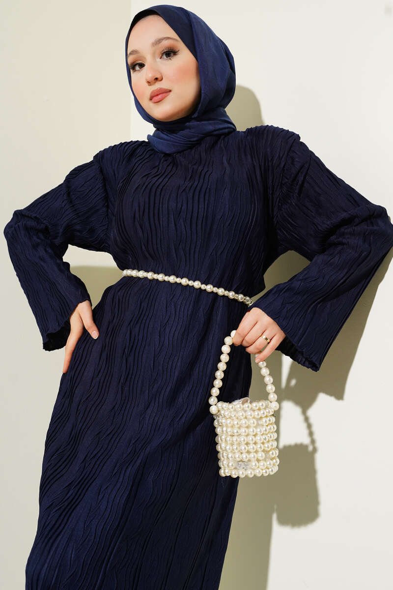 Saç Örgü Kabartmalı Triko Elbise İndigo