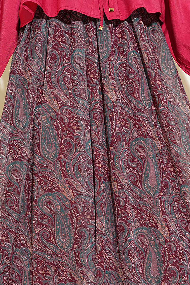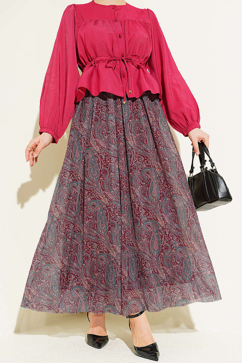 Kemerli Paisley Desen Şifon Etek Zümrüt