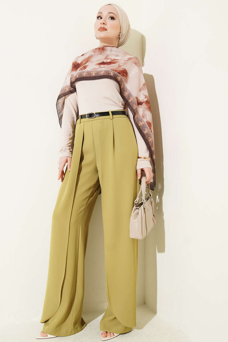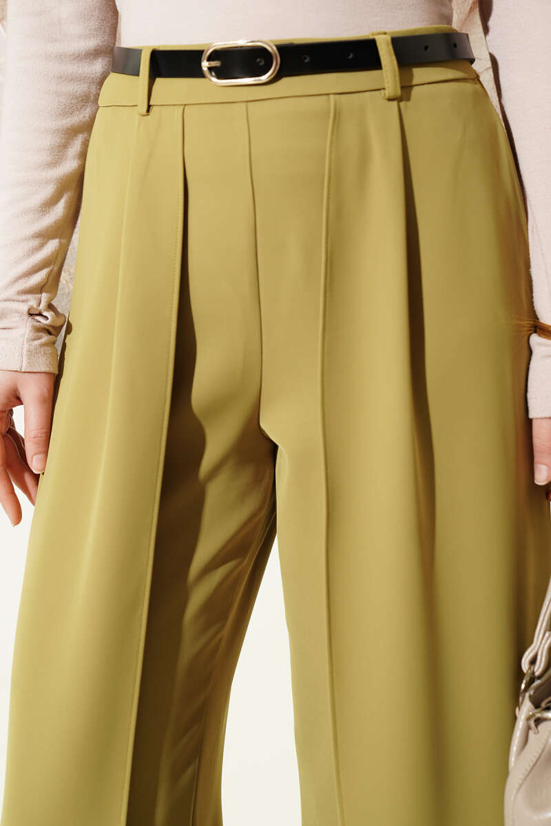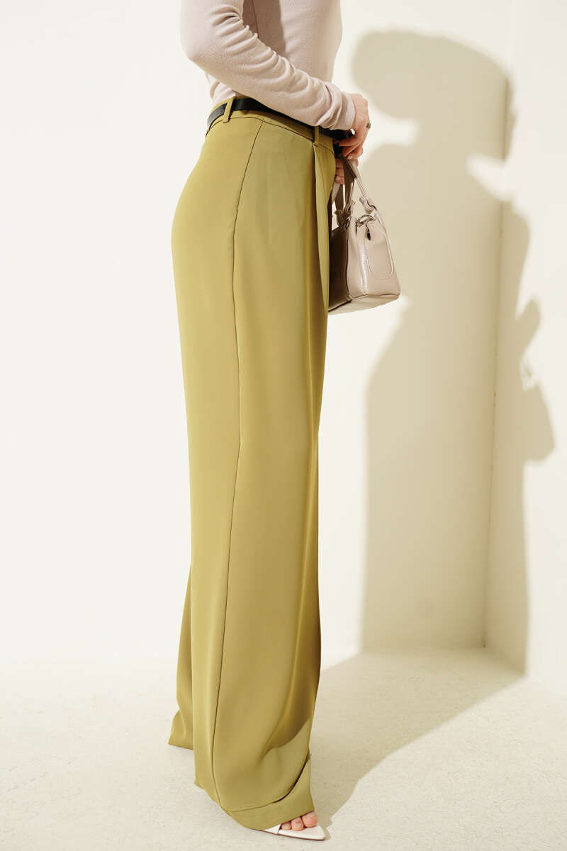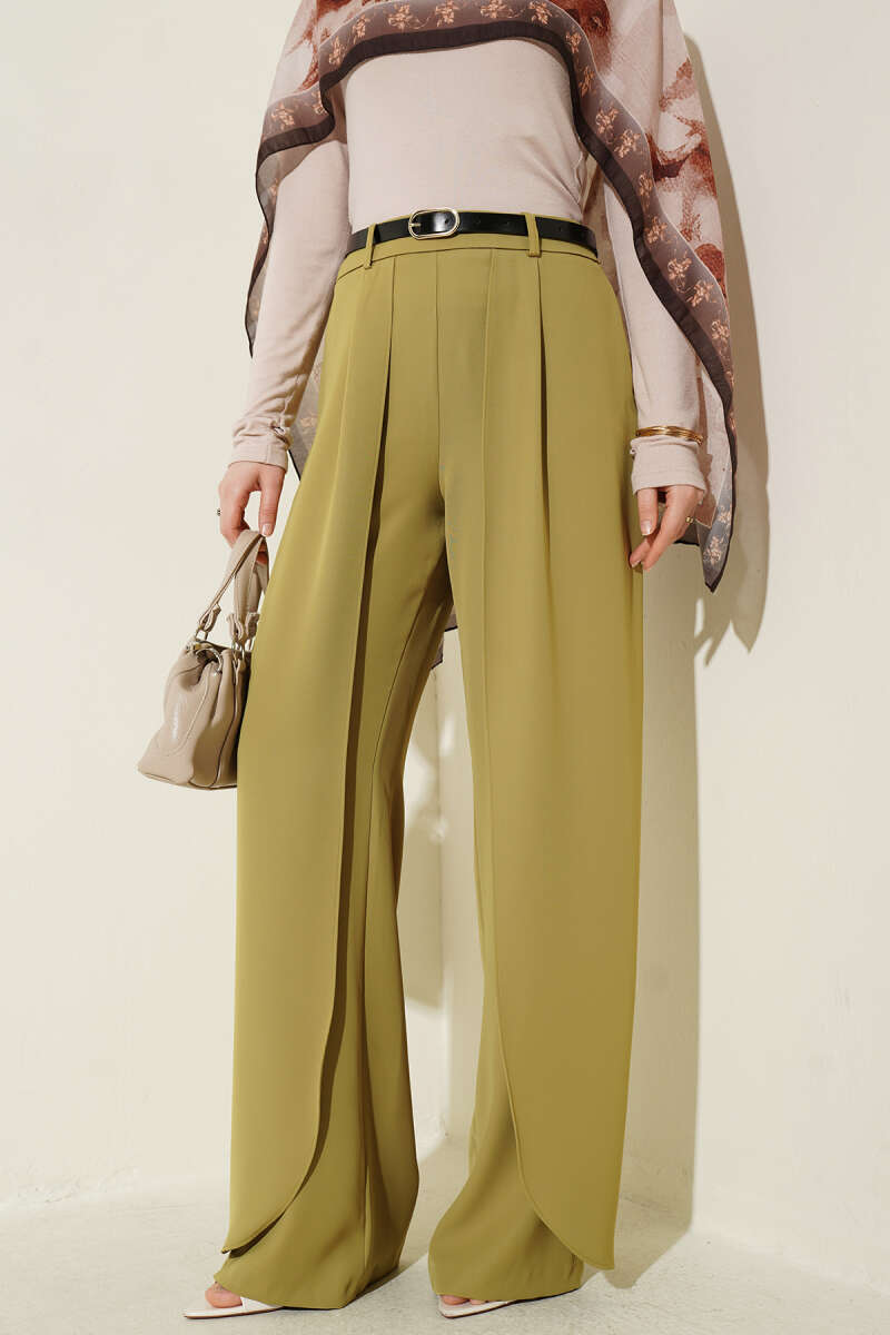 Kemerli Parça Detaylı Pantolon Yağ Yeşili