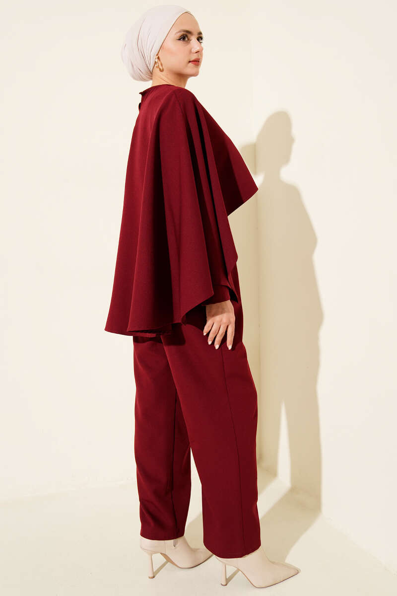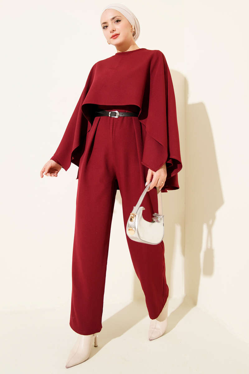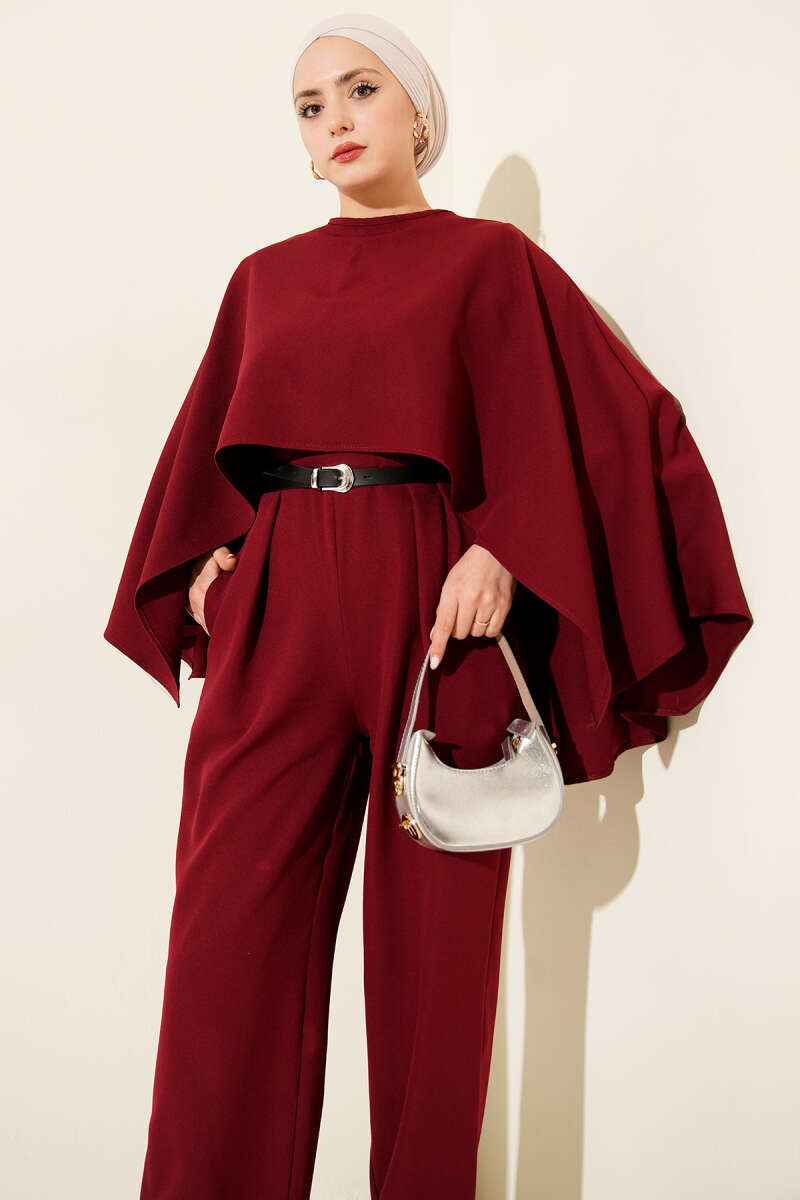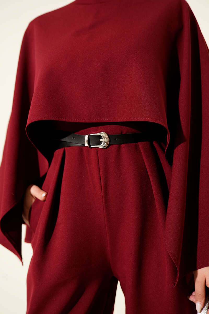 Kemerli Pelerinli Tulum Bordo