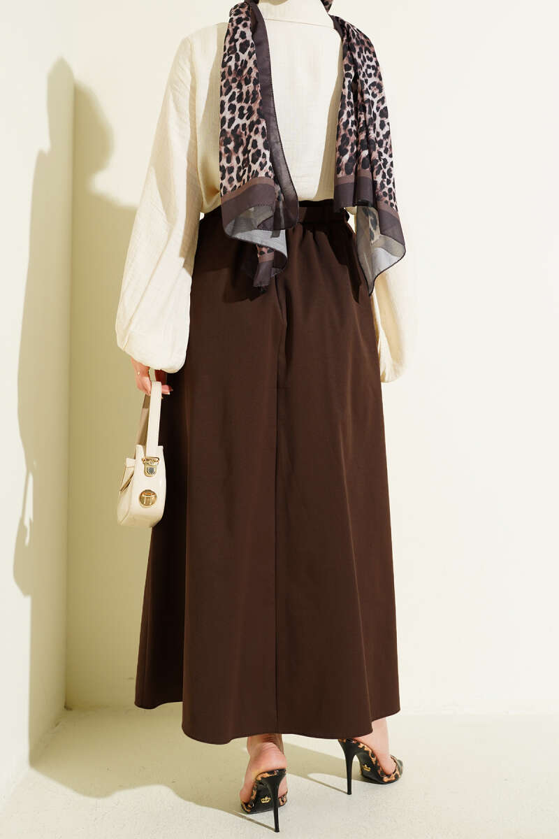 Loyşa Bel Lastikli Kemerli Etek Kahve