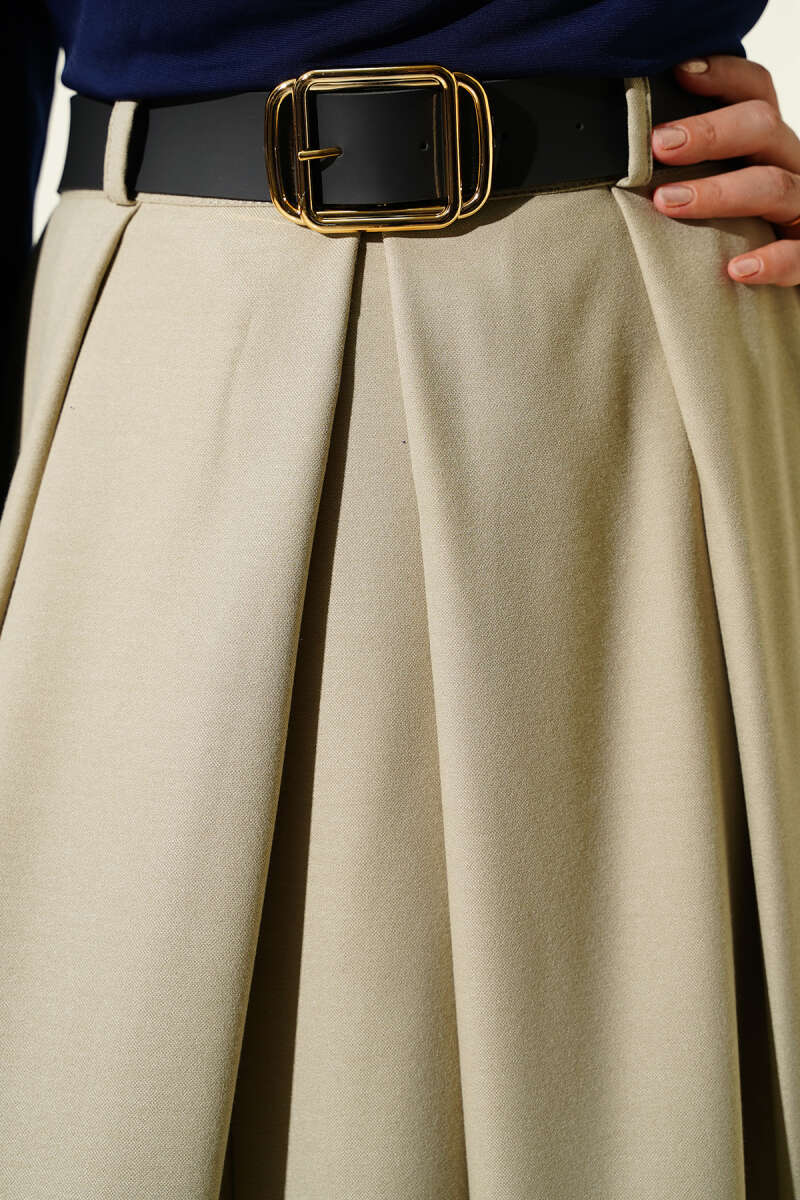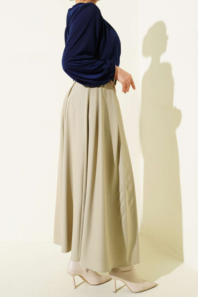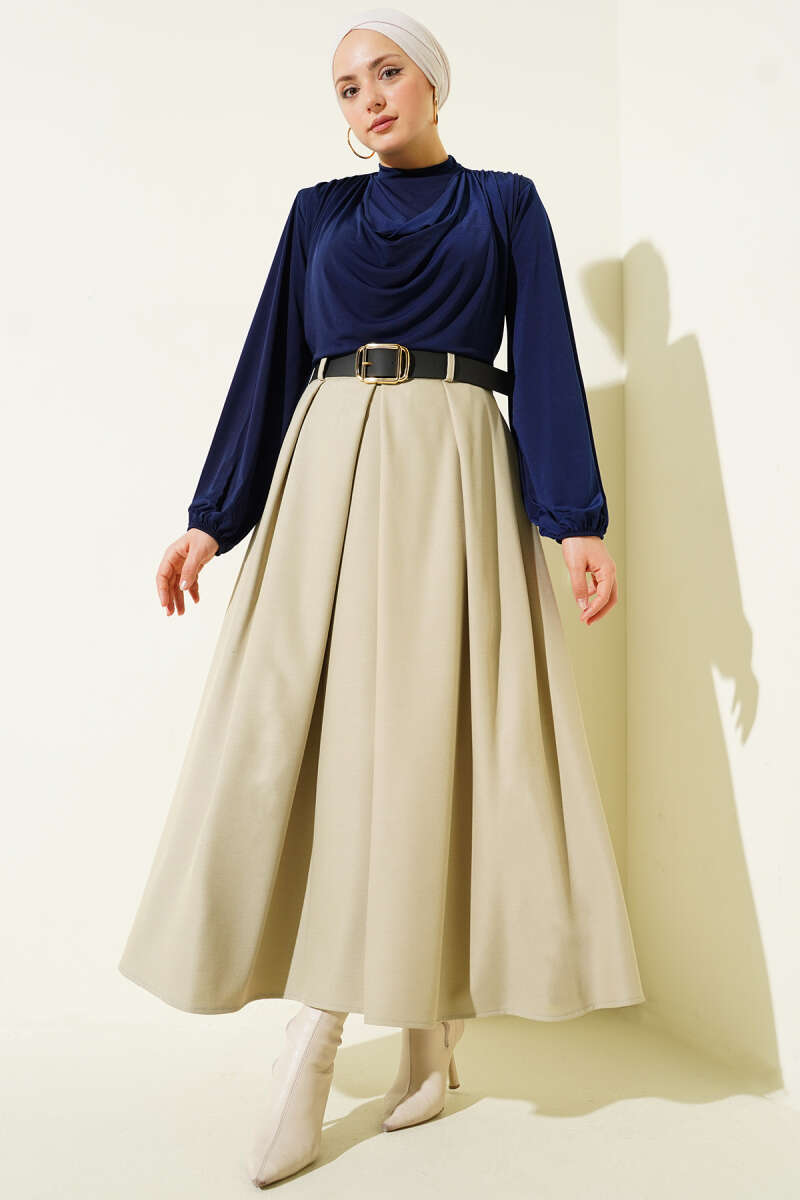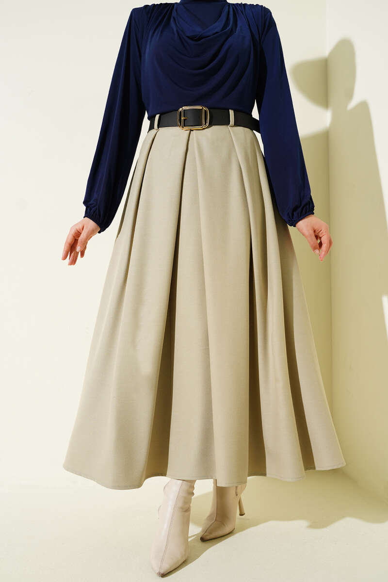 Fermuarlı Kemerli Poplin Etek Mürdüm