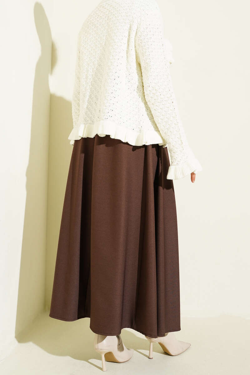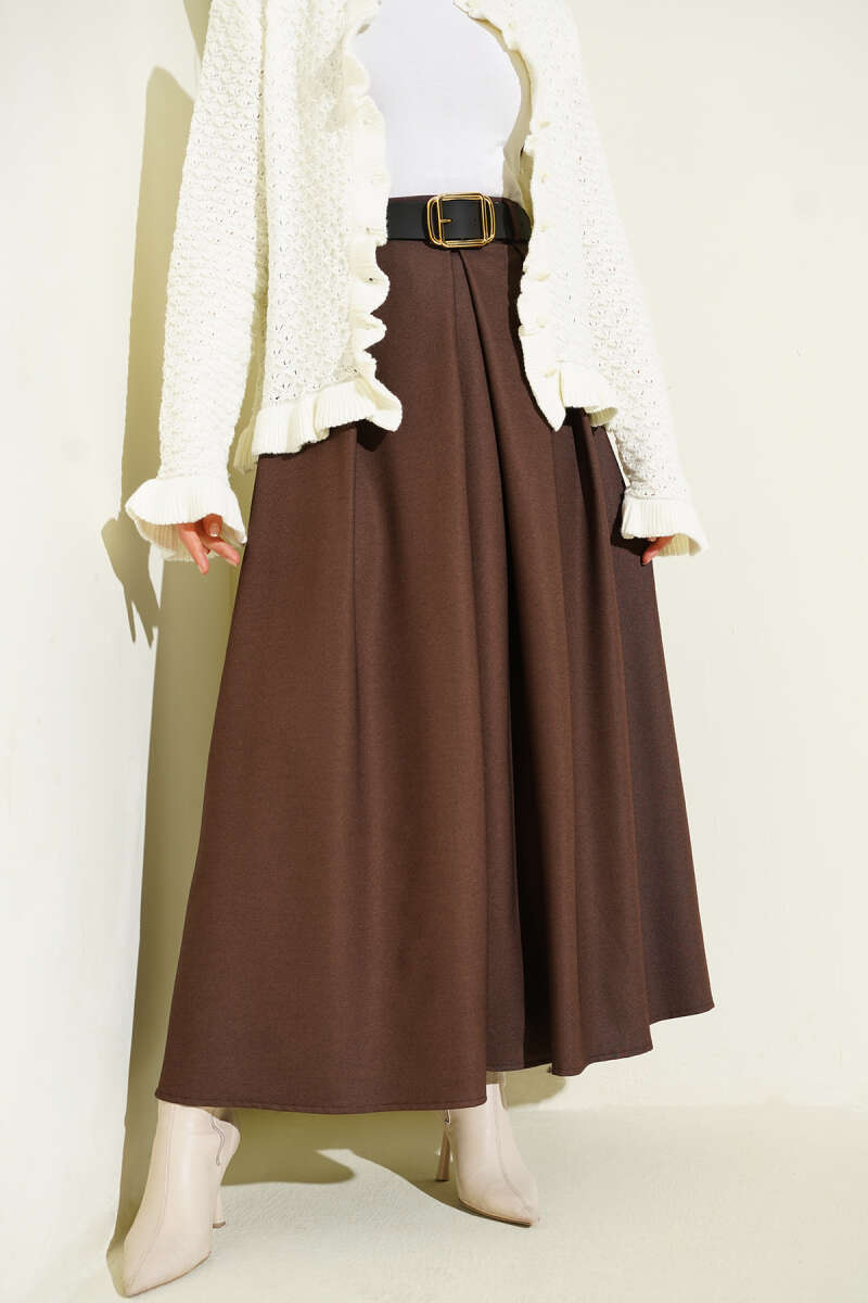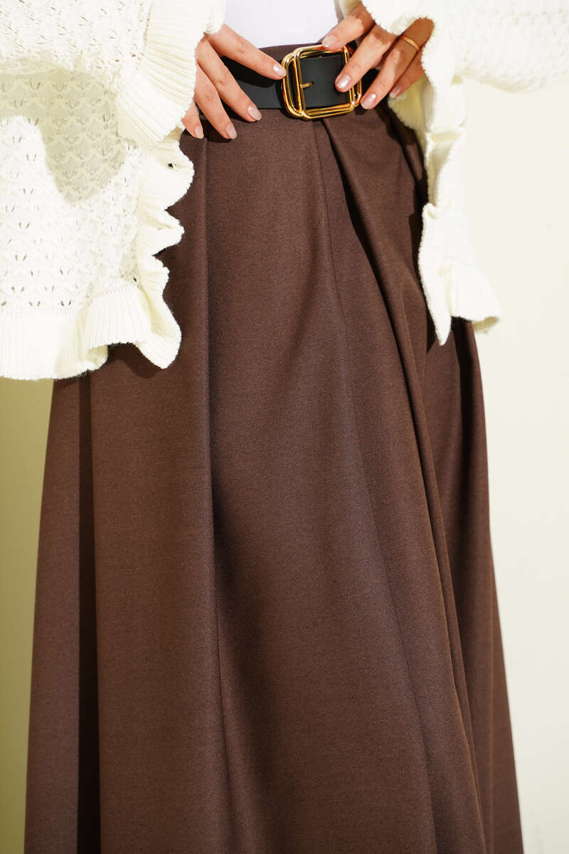 Oval Kemer Tokalı Ekoseli Etek Kahve