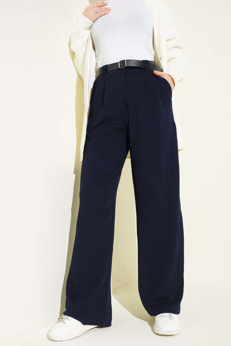 Kemerli Cepli Dar Paça Kumaş Pantolon Lacivert
