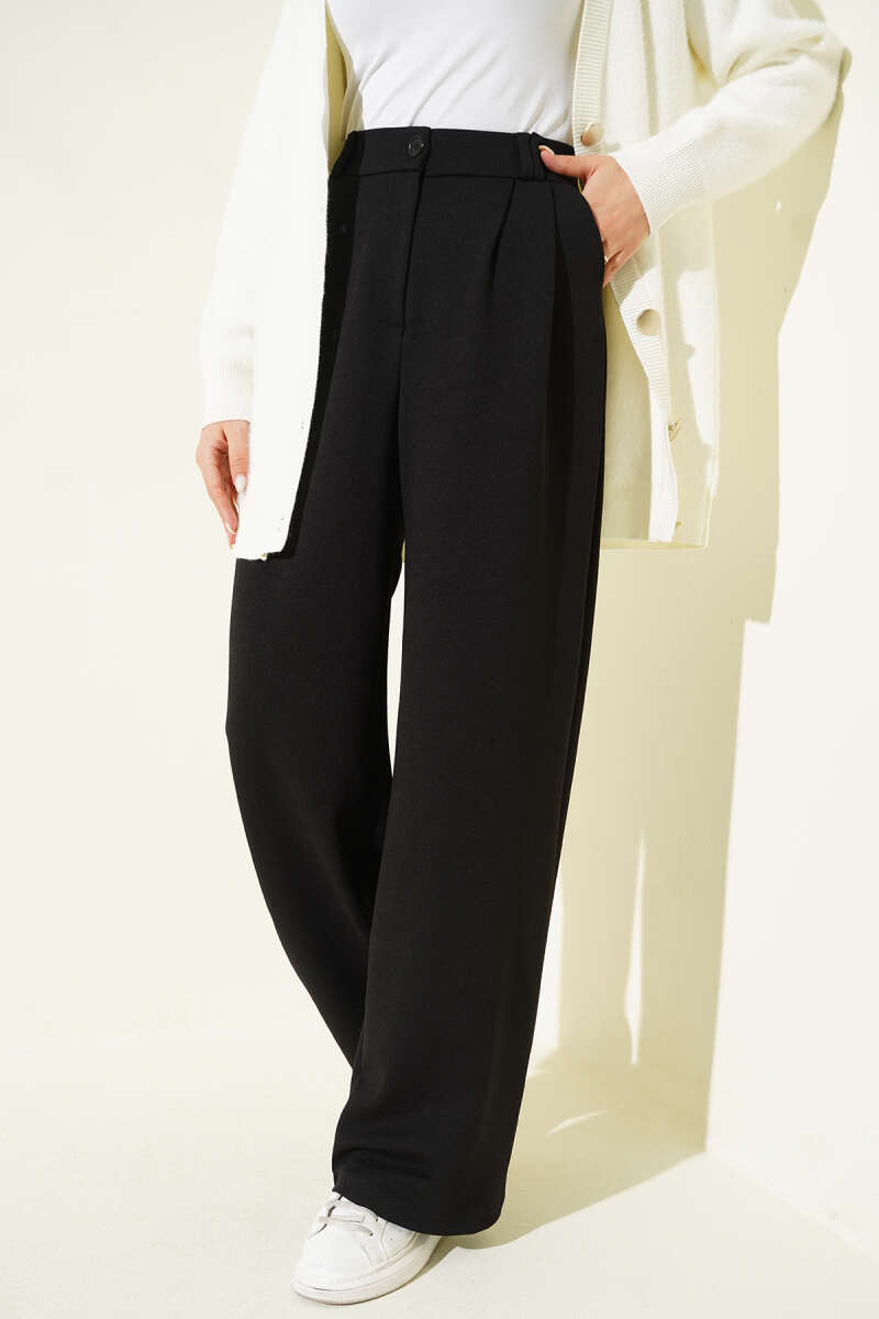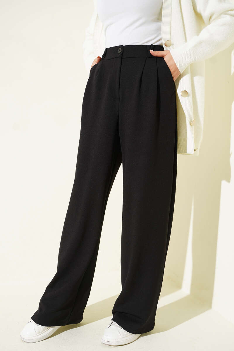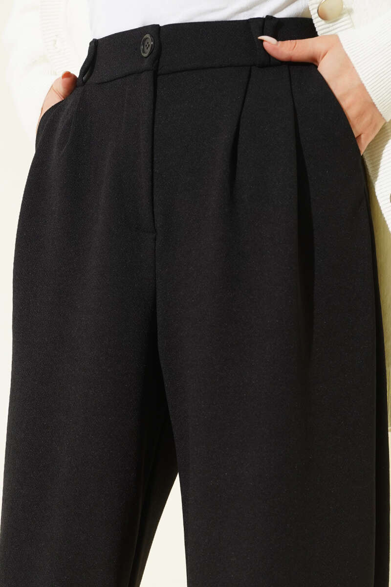 Çımalı Boru Paça Pantolon Siyah