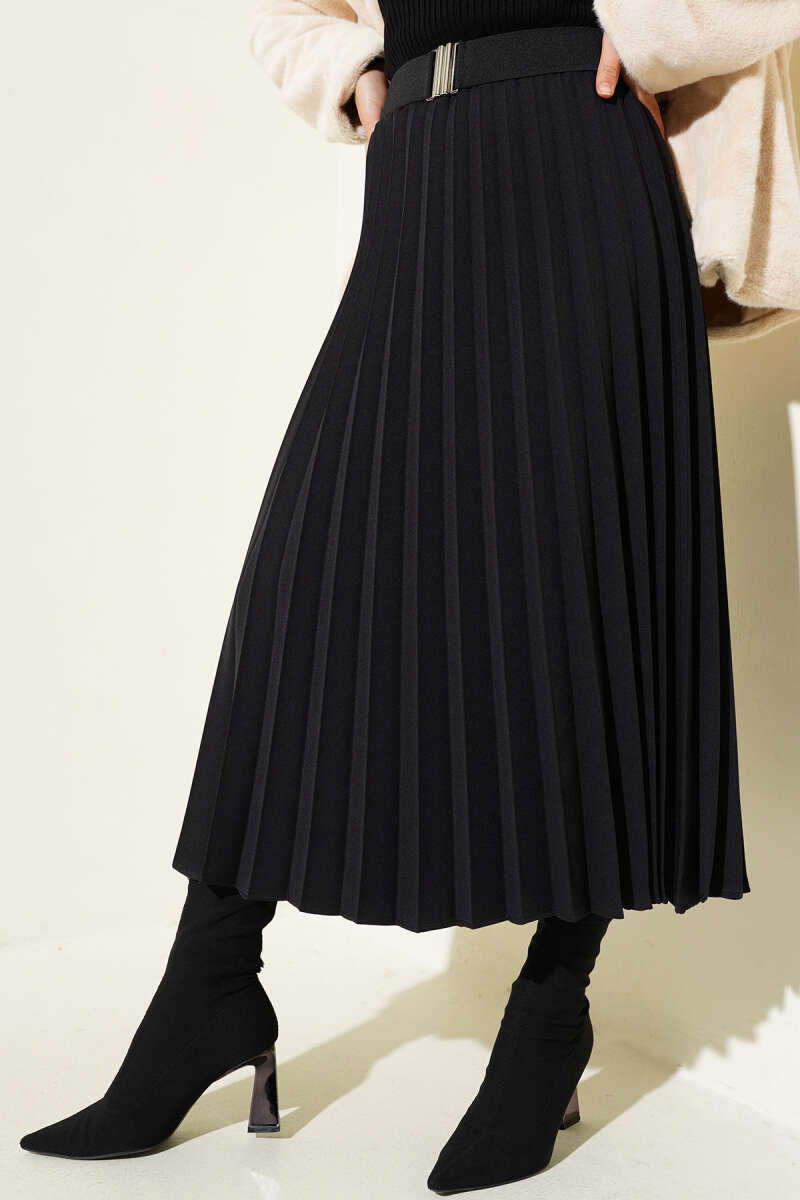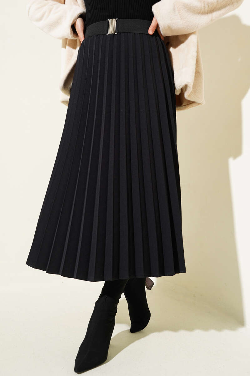 Kemer Aksesuarlı Ekoseli Etek Bordo