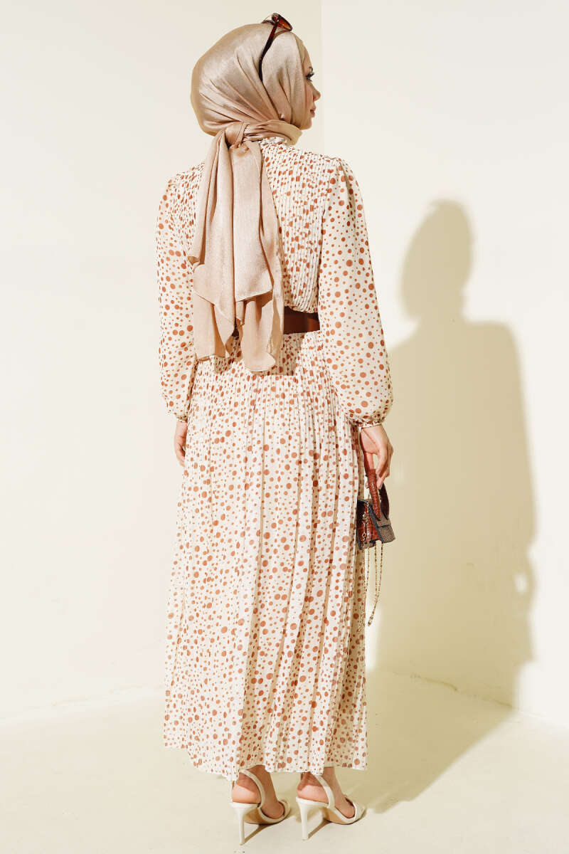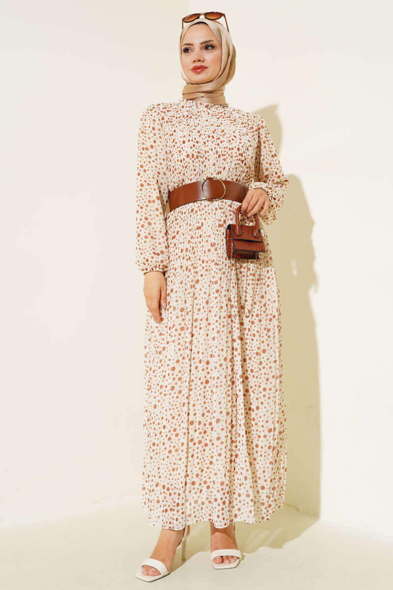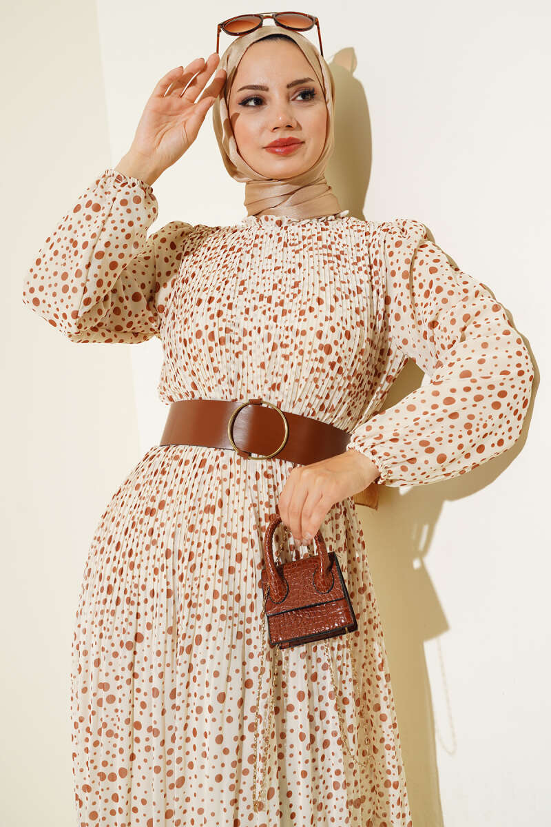 Balıkçı Yaka Pileli Midi Elbise Kahve