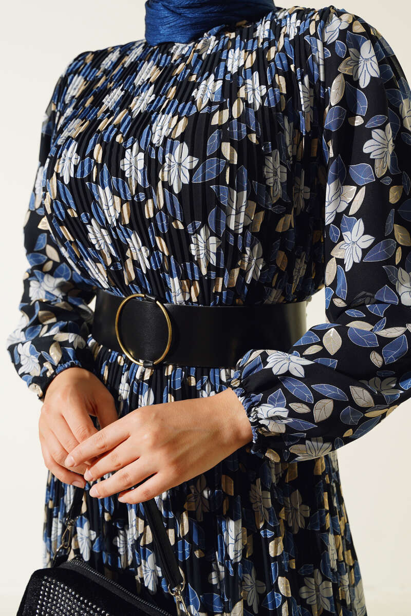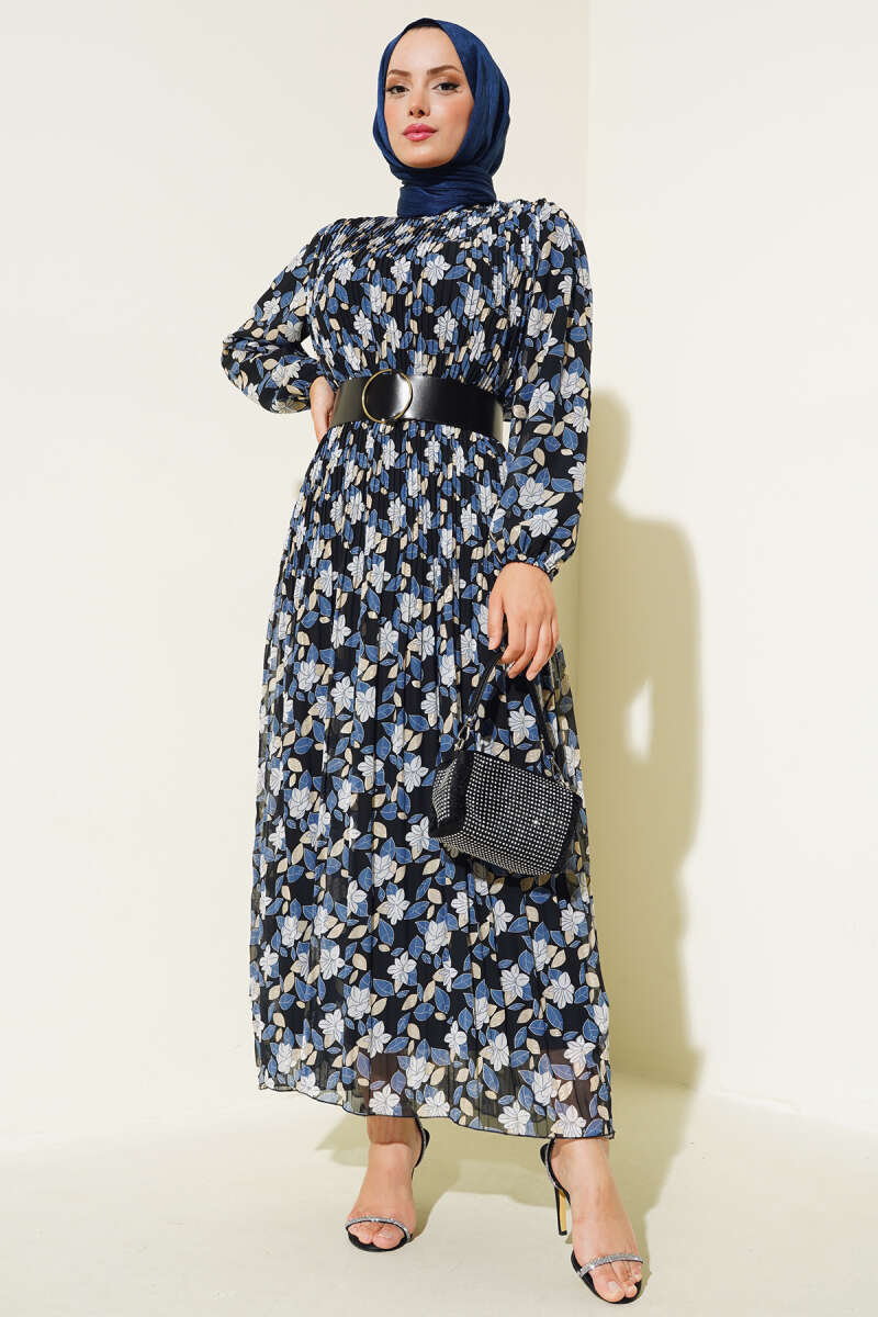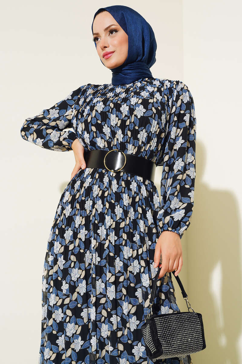 Kolları Fiyonk Detaylı Selanik Elbise Taş