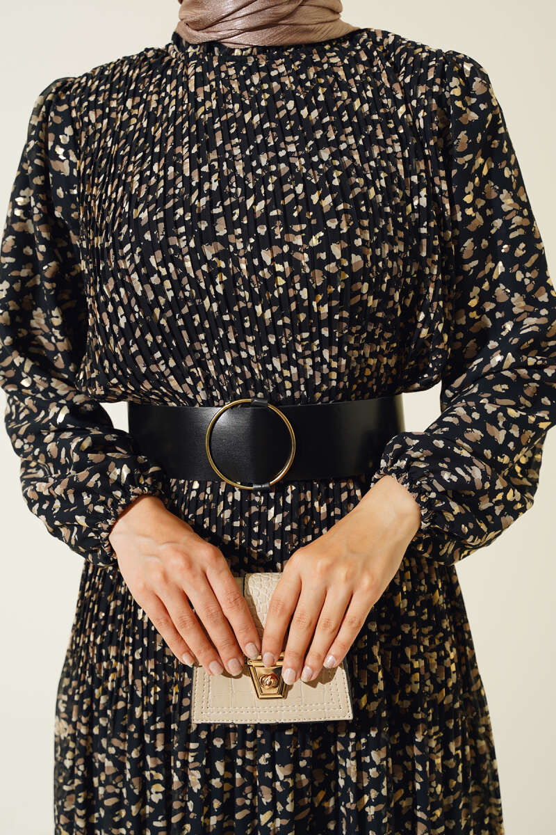 Pötikareli Yanları Büzgü Detay Siyah Tunik
