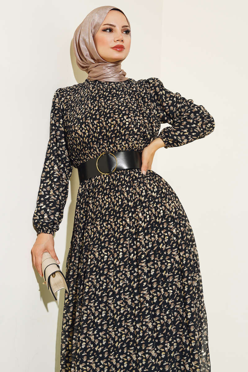 Omuz Pelerinli Taş Detaylı Abiye Elbise Siyah
