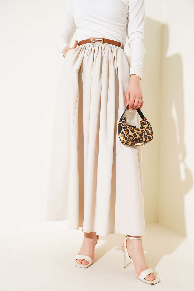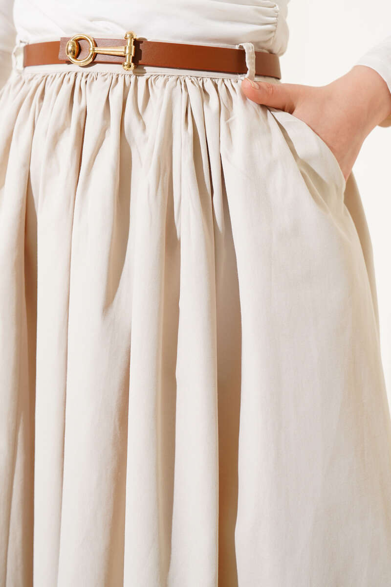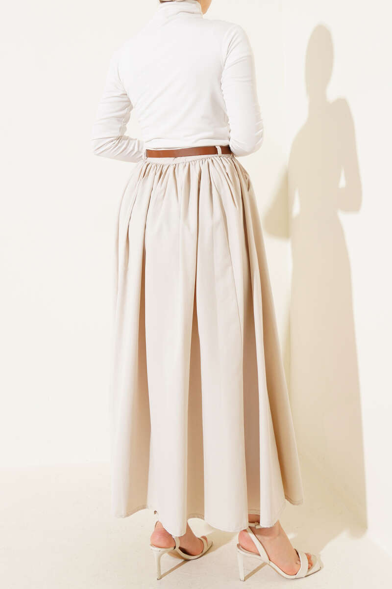 İp Bağlamalı Kloş Scuba Etek Bej