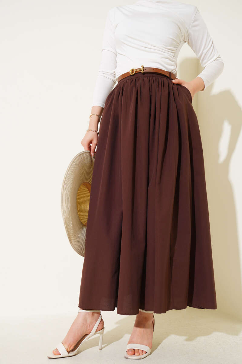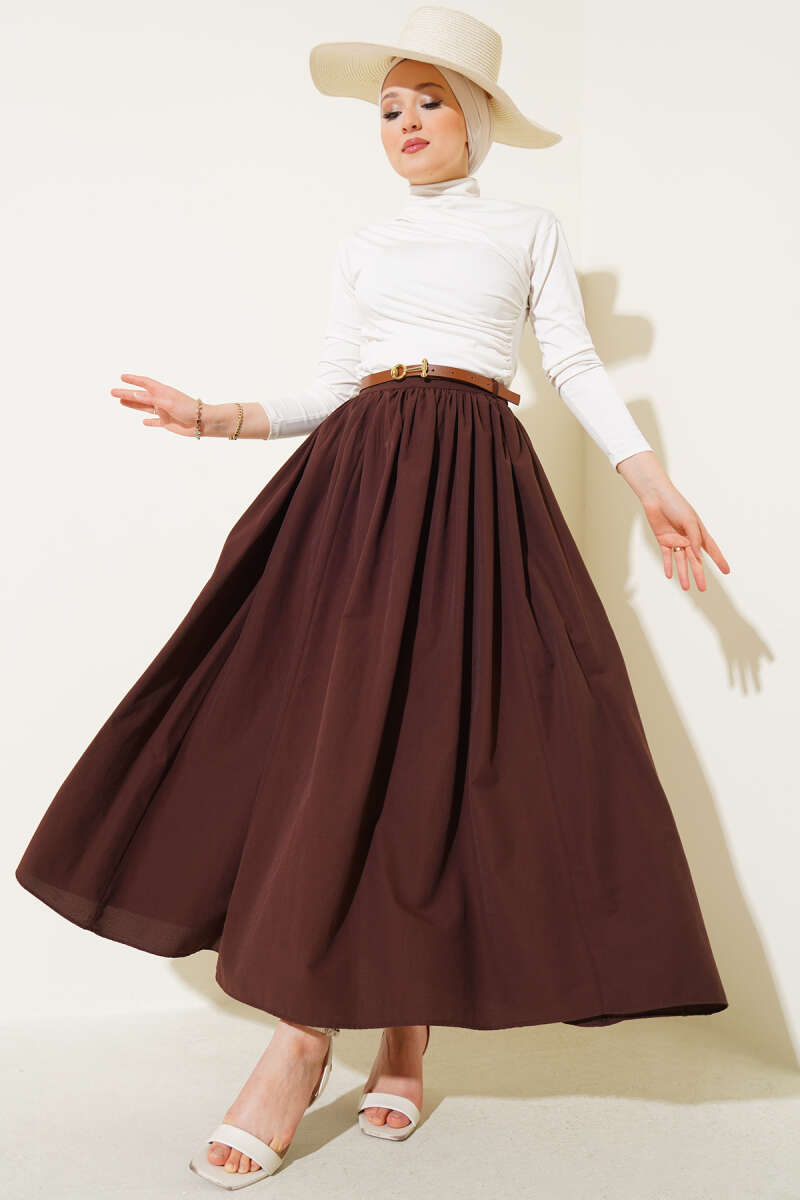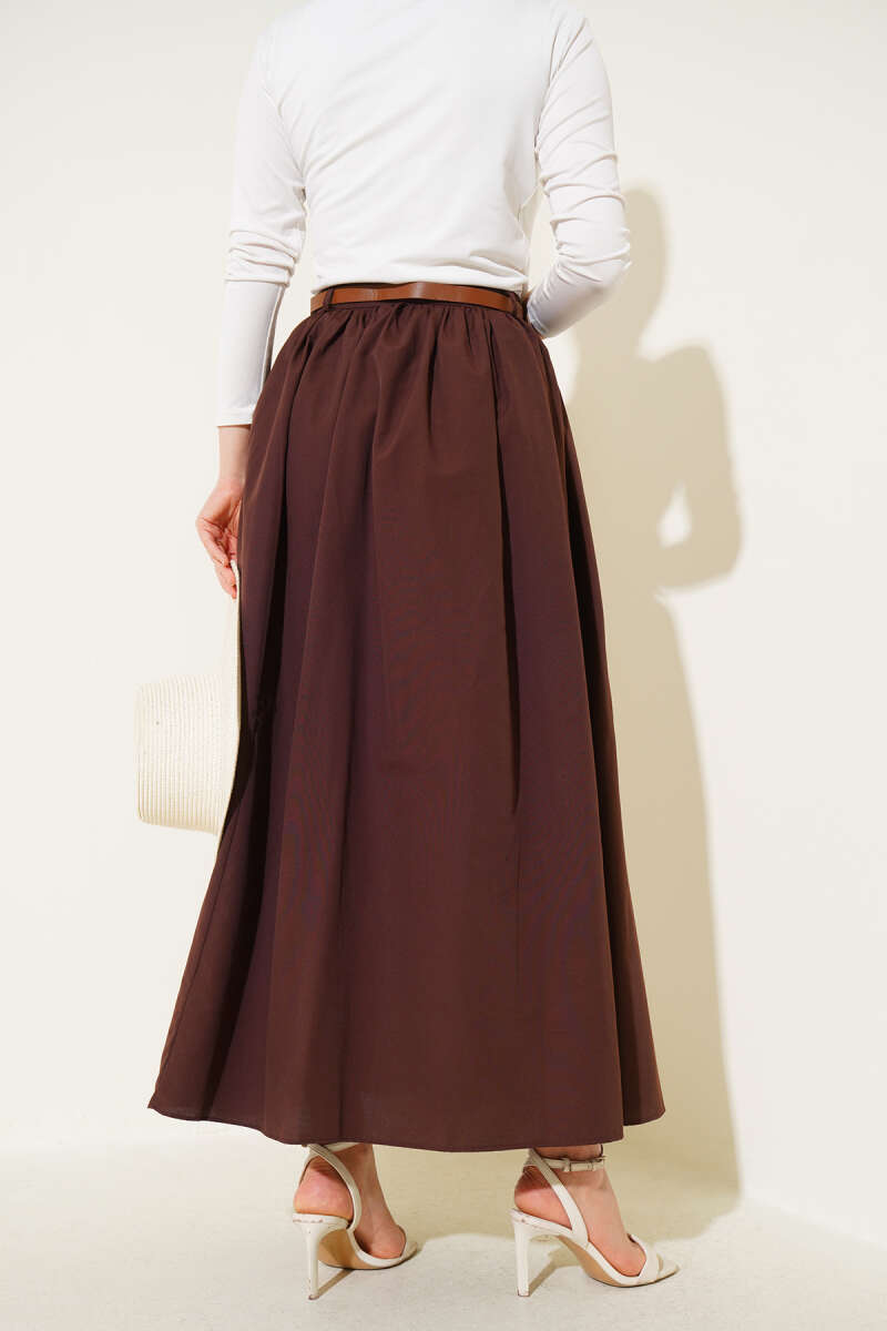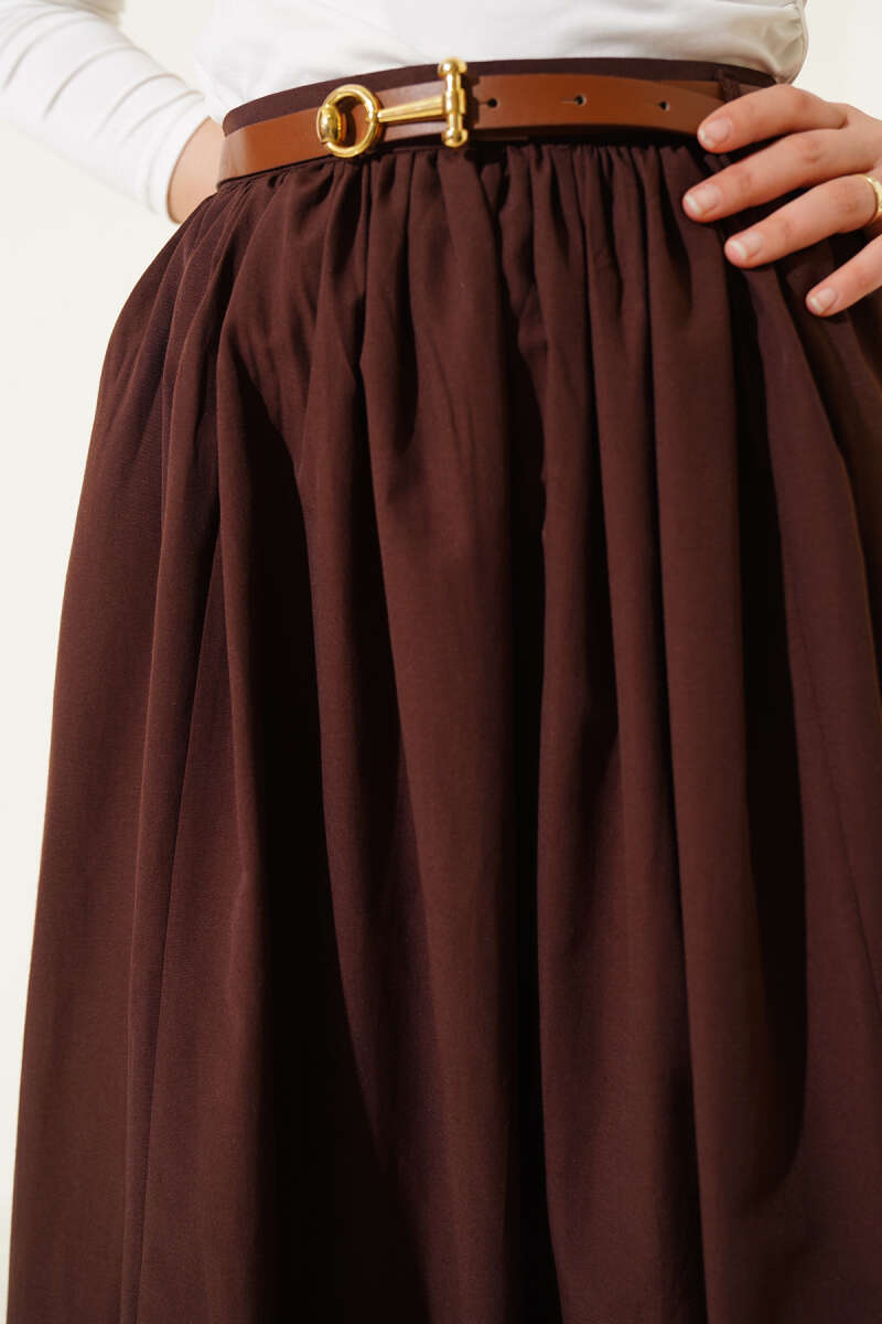 Kemer Aksesuarlı Ekoseli Etek Haki