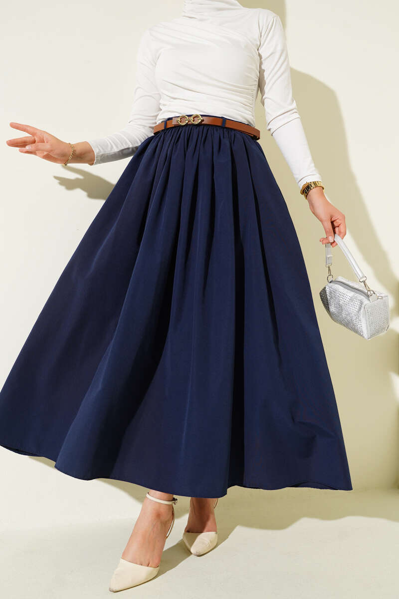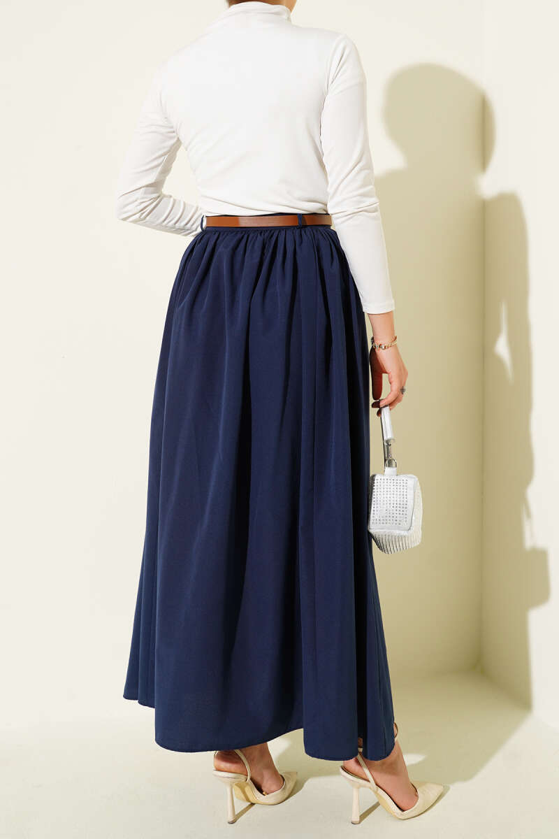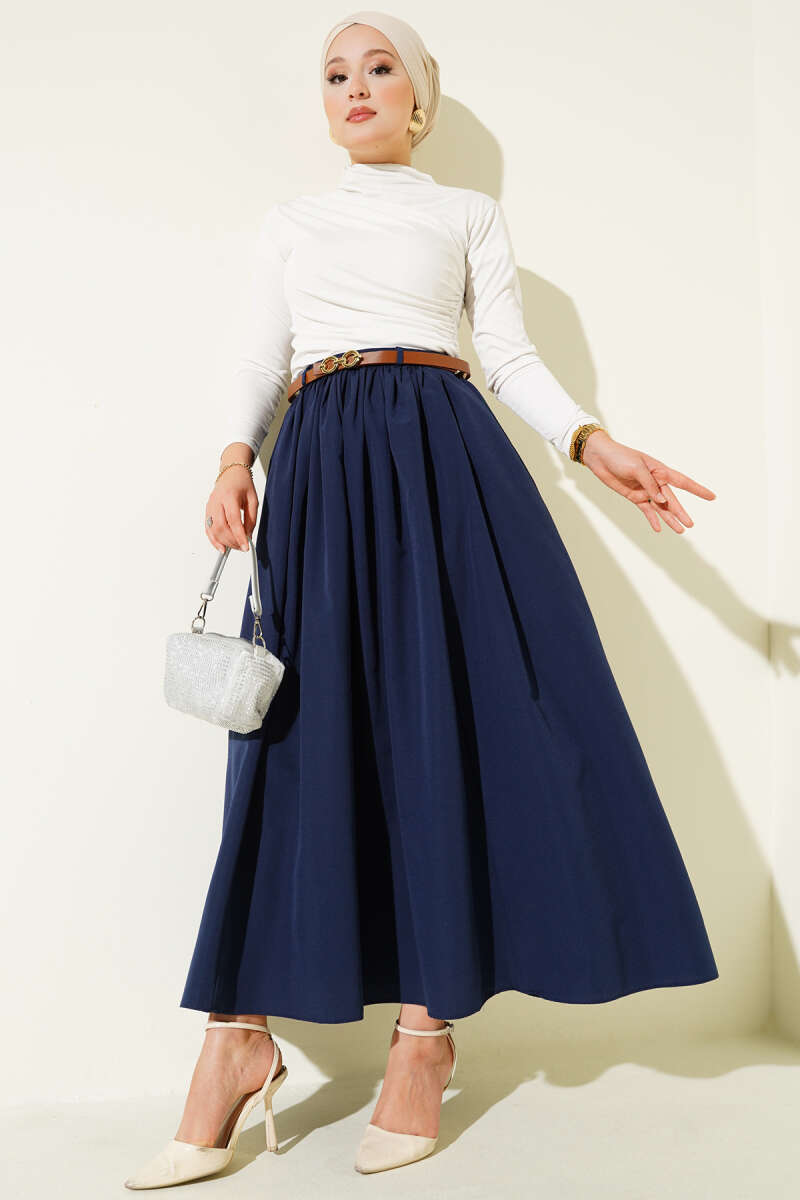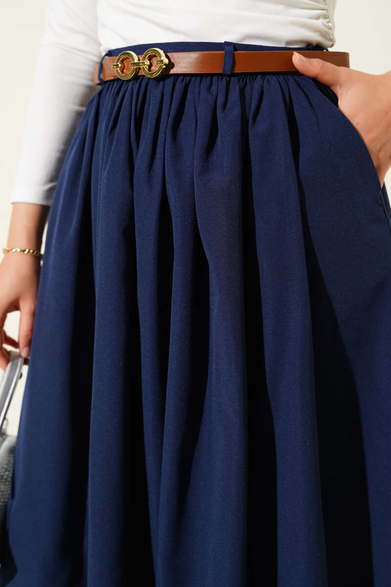 Bağlama Detaylı Scuba Etek Lacivert