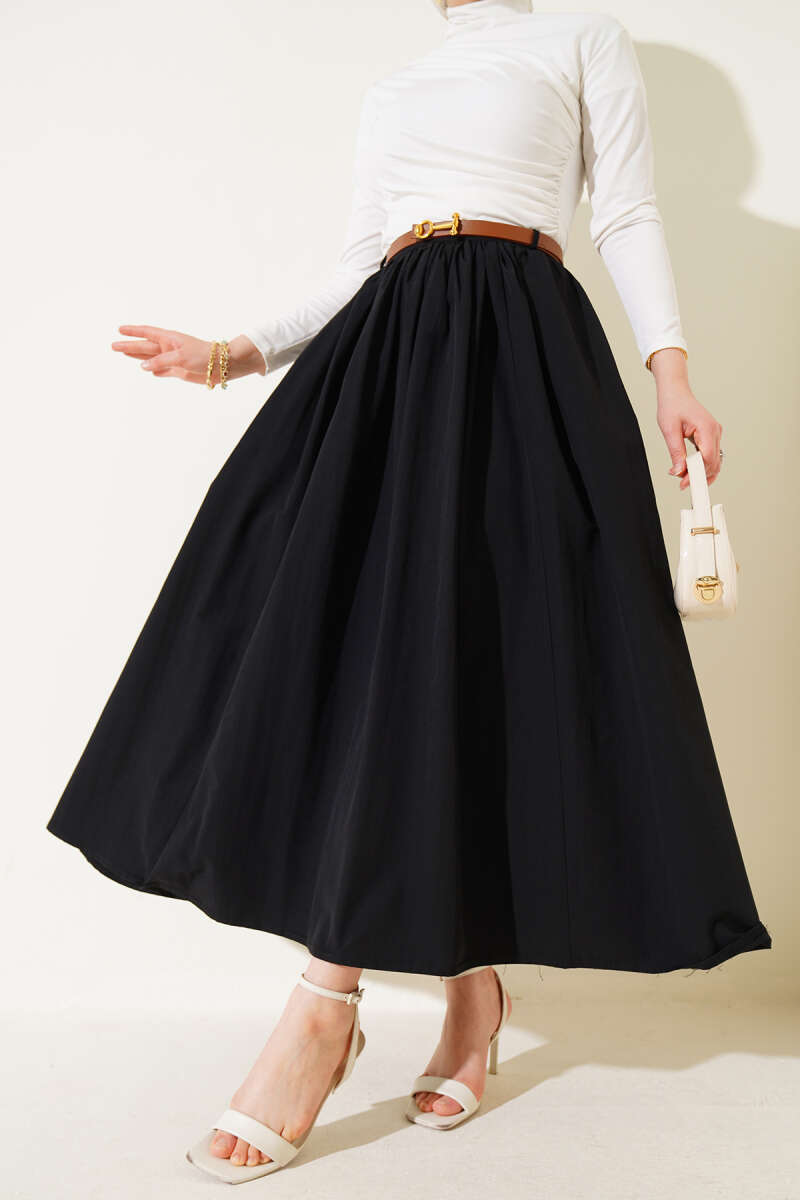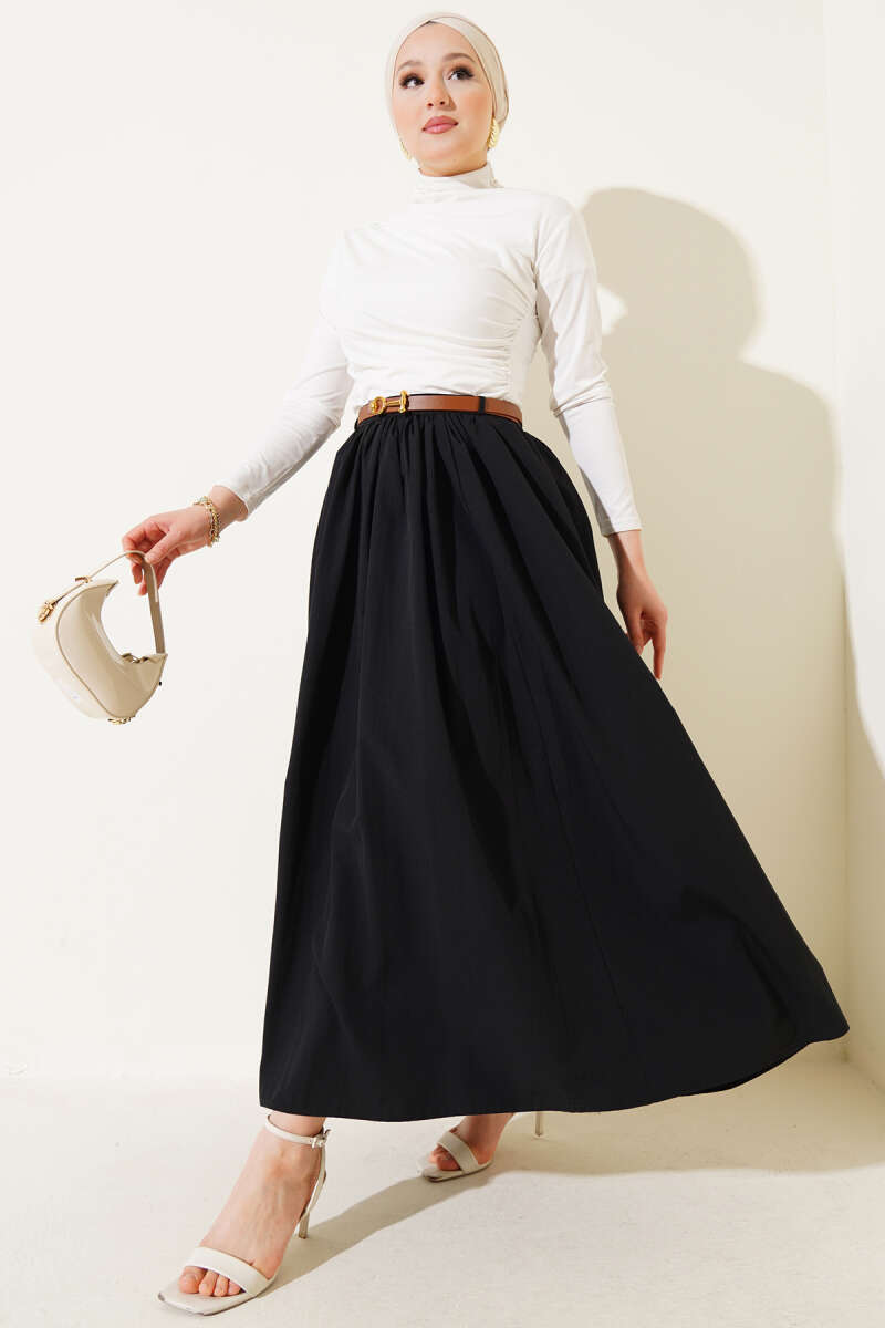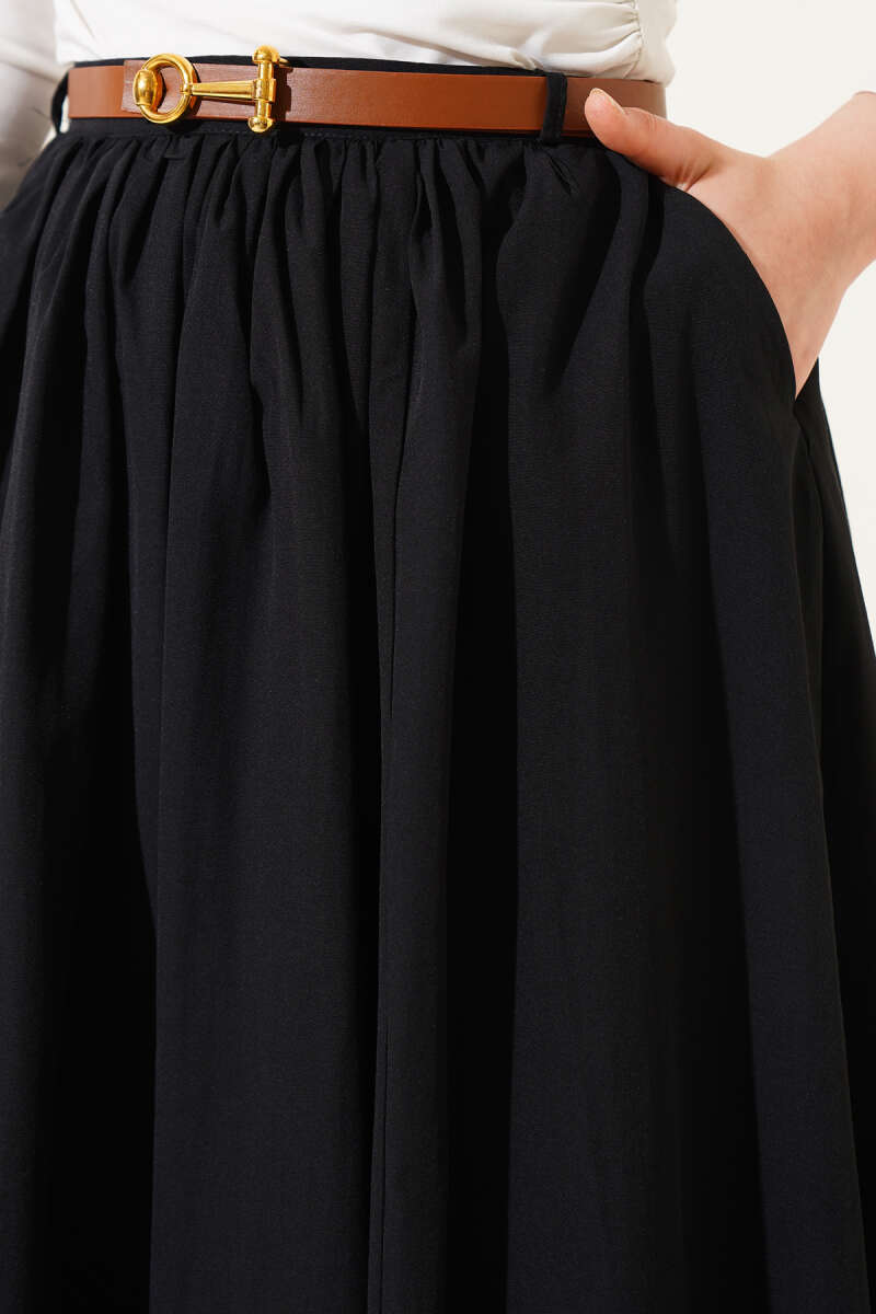 Beli Lastikli Ekose Desen Kloş Etek Siyah