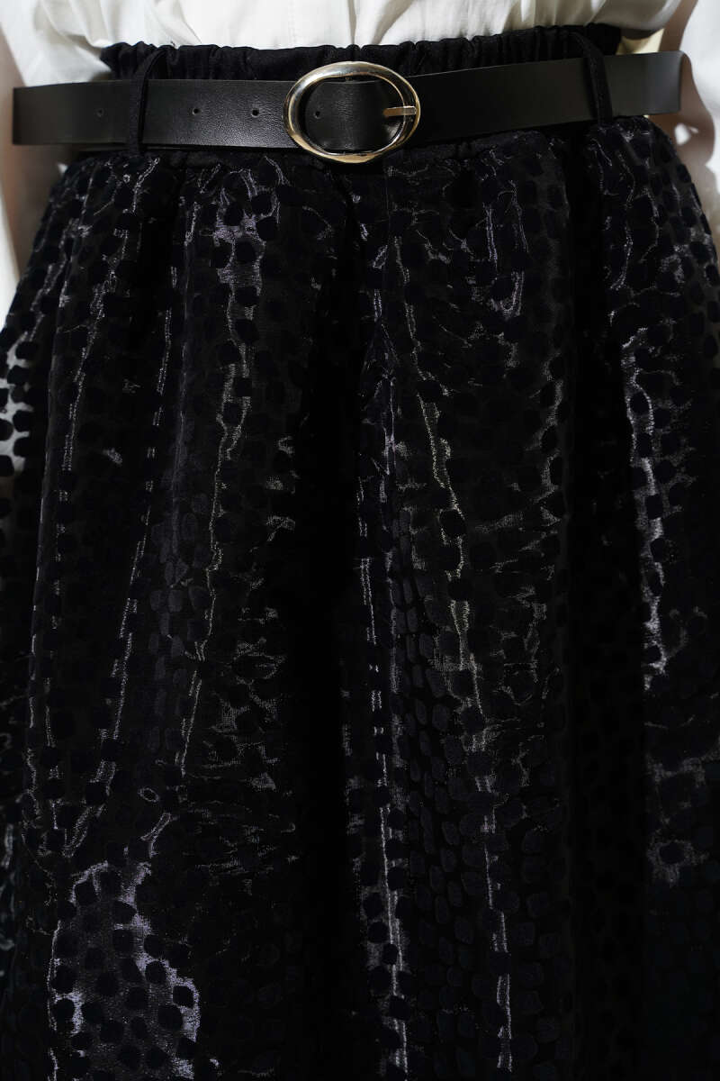 Geniş Kemerli Pileli Tensel Etek Siyah