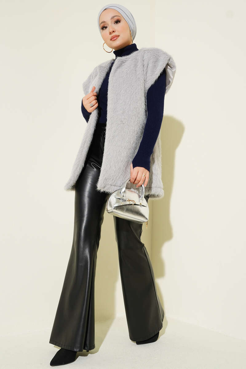 Çift Cep Detaylı Kürk Yelek Taş