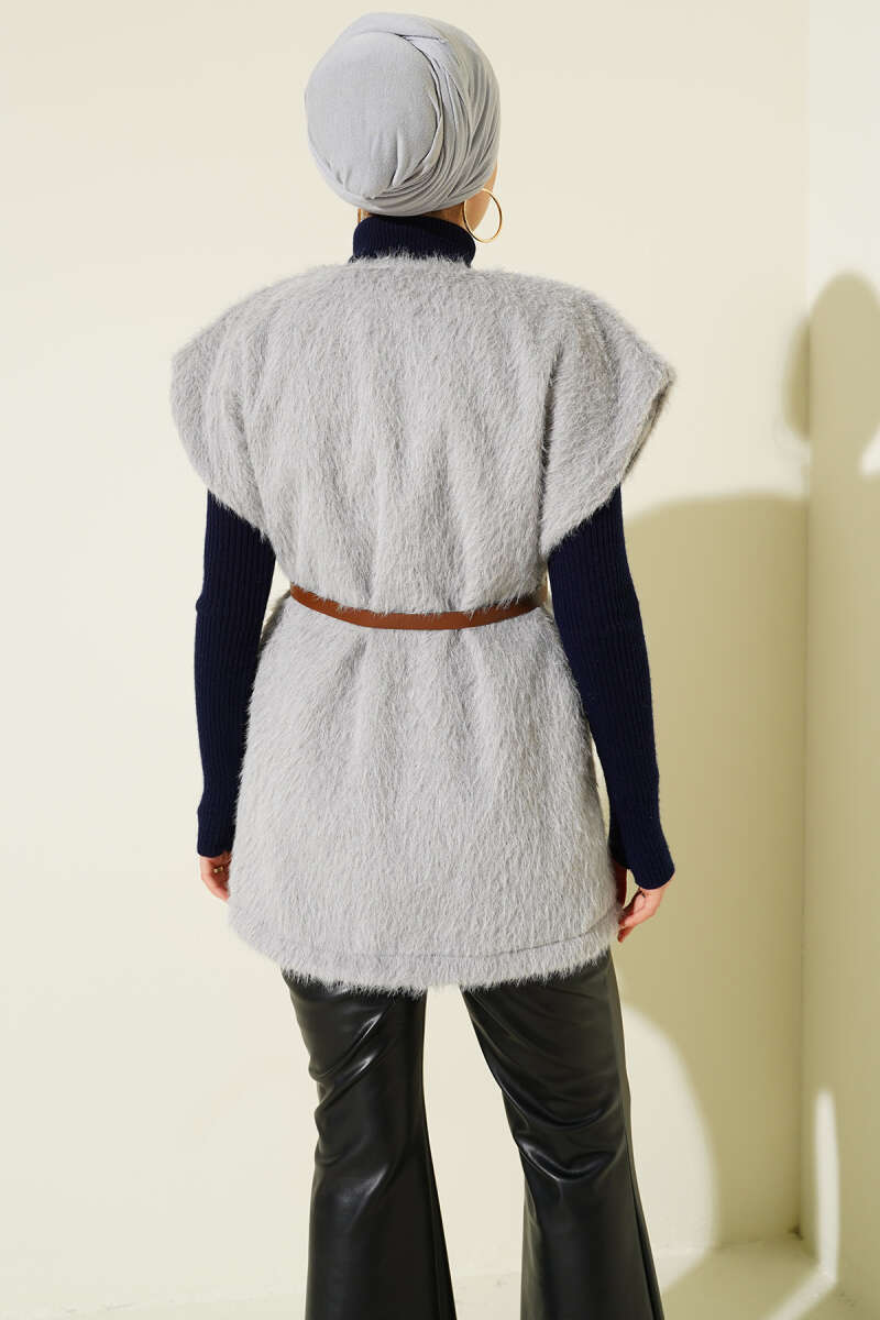 Kemerli Sakallı Yelek Gri