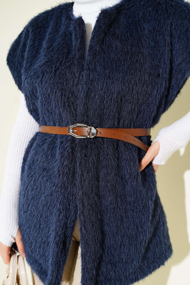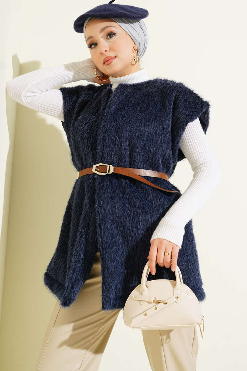 Etnik Desen Çıtçıtlı Yelek Lacivert