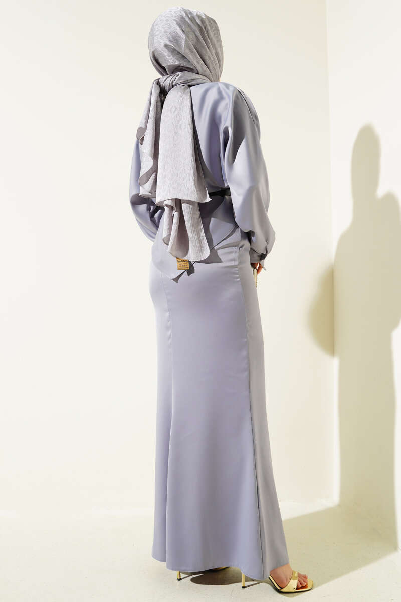 Kemerli Saten Kalem Etek İkili Takım Gri