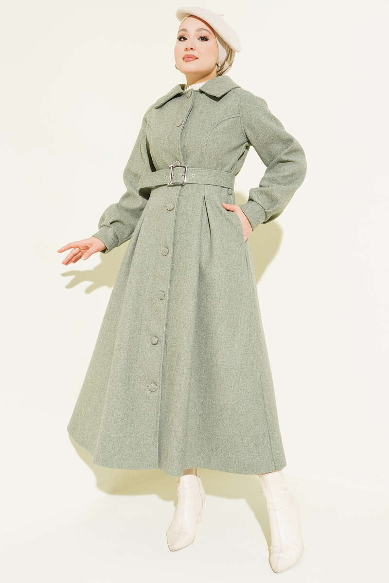 Balon Kol Kısa Kaşe Kaban Su Yeşili