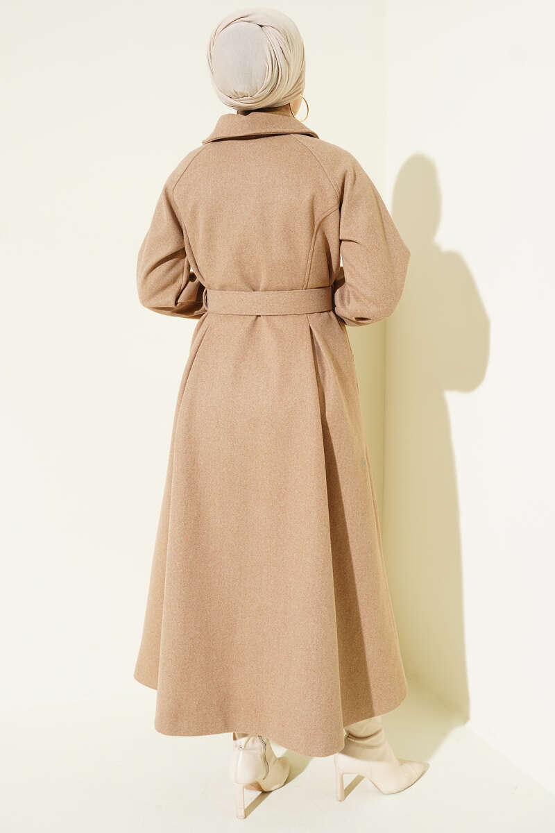Kruvaze Yaka Uzun Kaşe Kaban Vizon