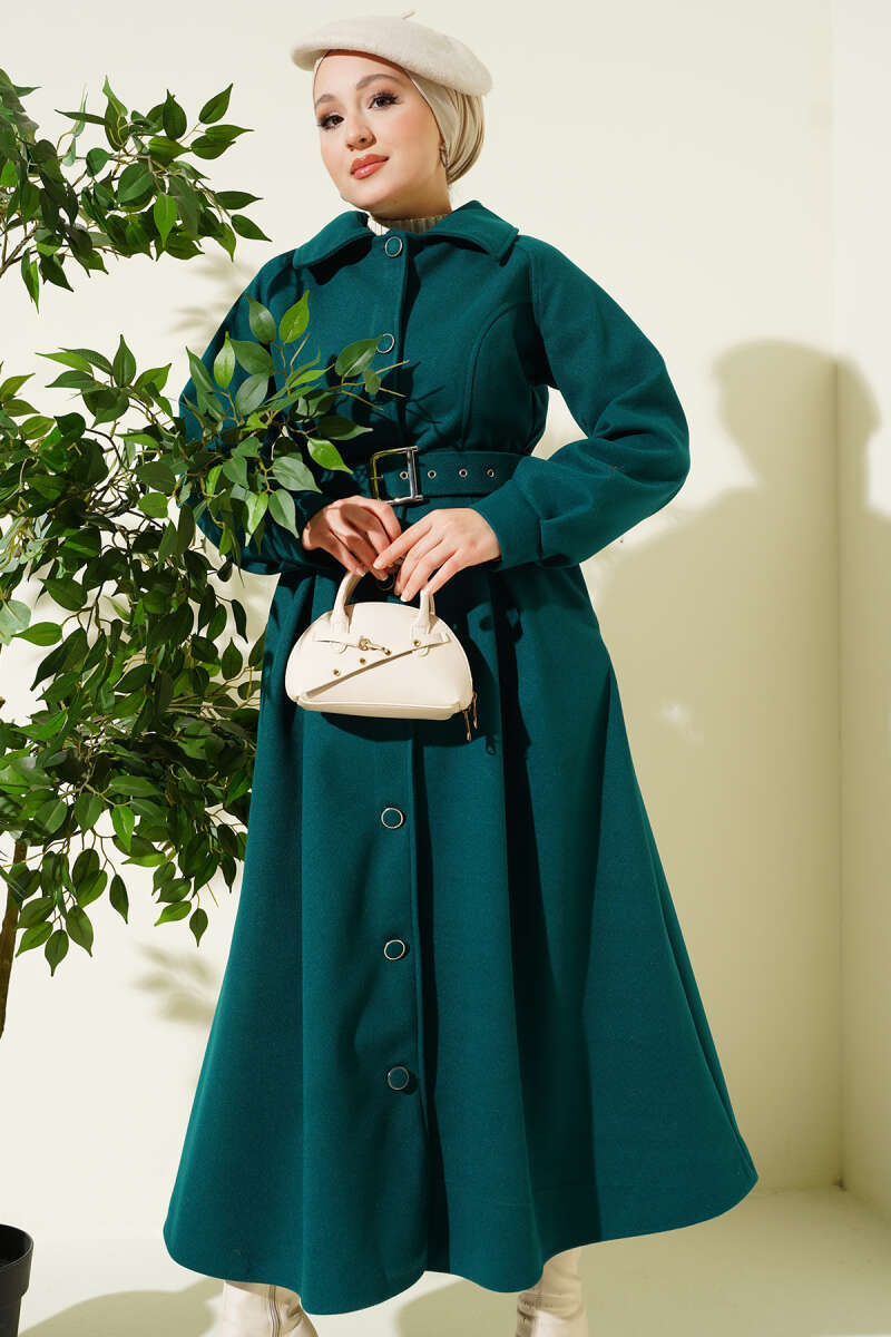 Balon Kol Kısa Kaşe Kaban Su Yeşili