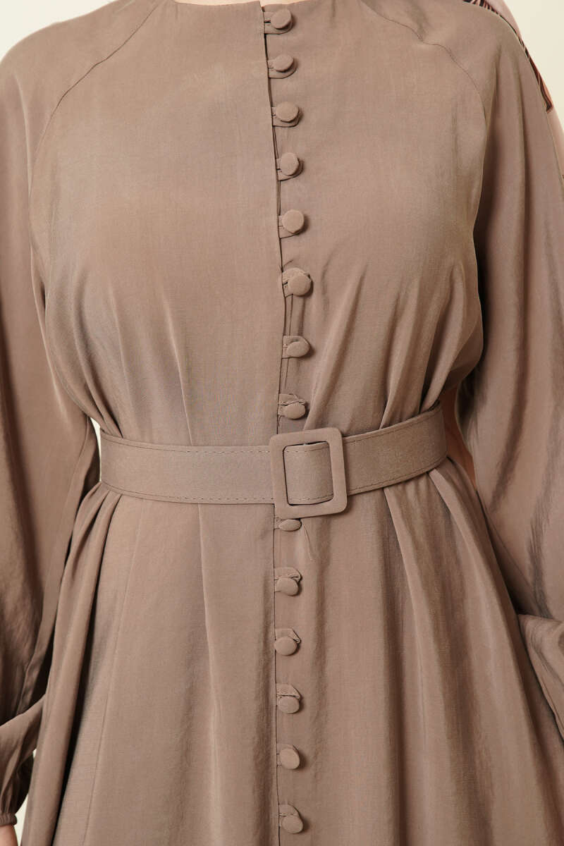 Kapüşonlu Yelekli Loyşa Elbise Vizon