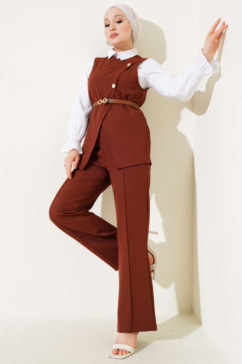 Dikiş Detaylı Basic Triko İkili Takım Kahve