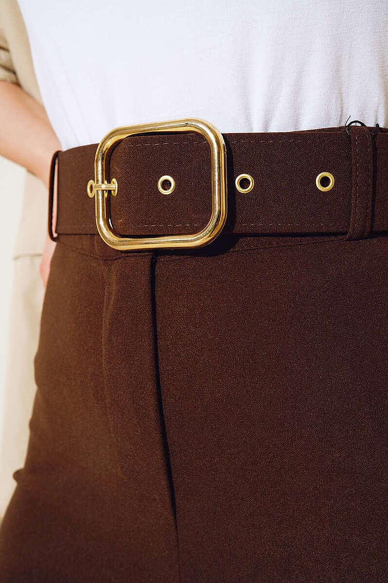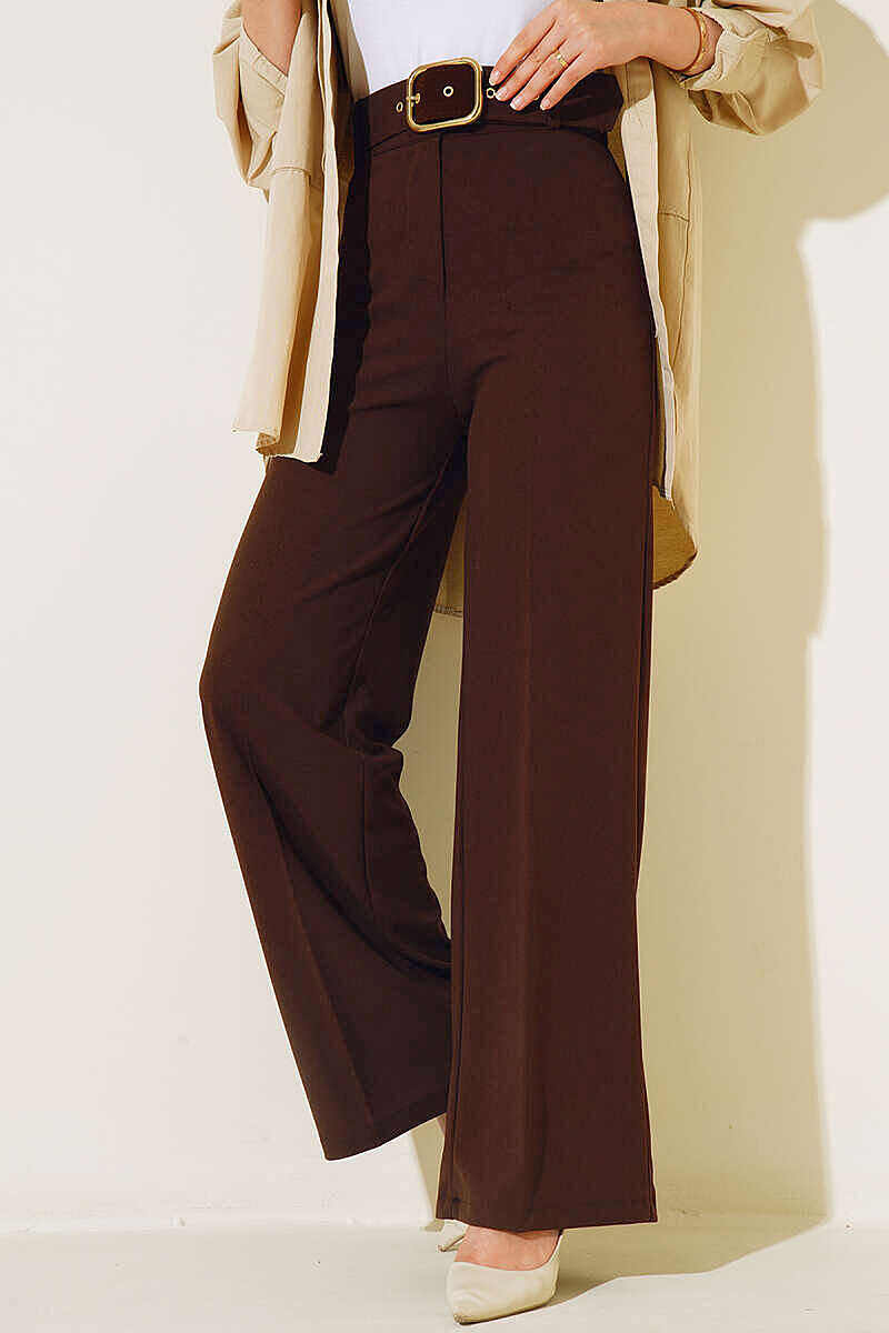 Geniş Paçalı Kemerli Pantolon Kahve