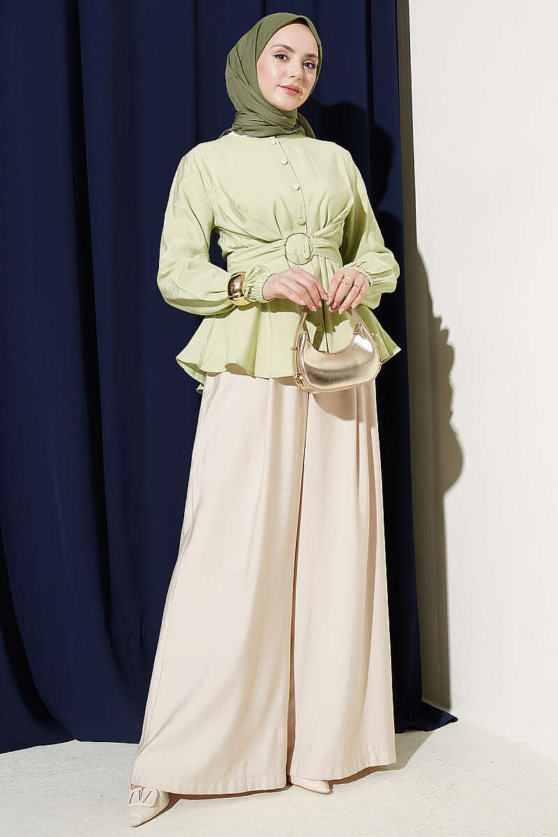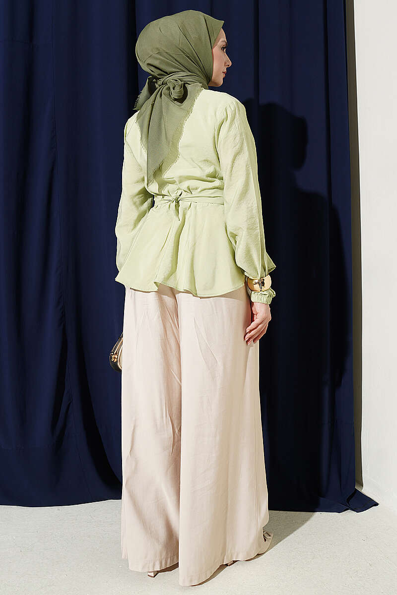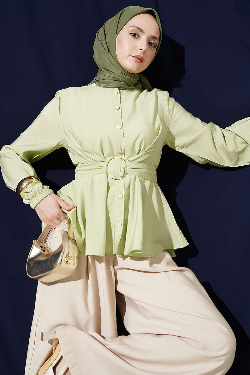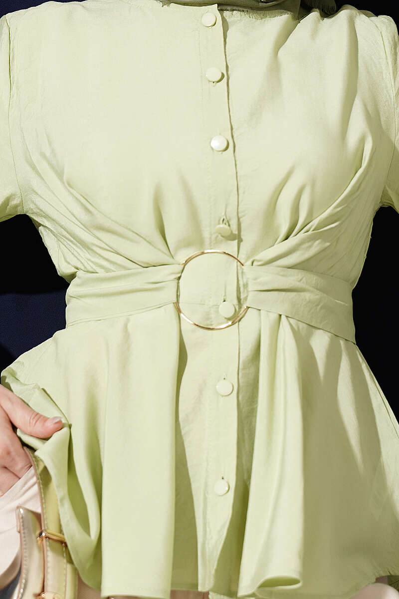 Kendinden Bağlamalı Kısa Gömlek Çağla Yeşili