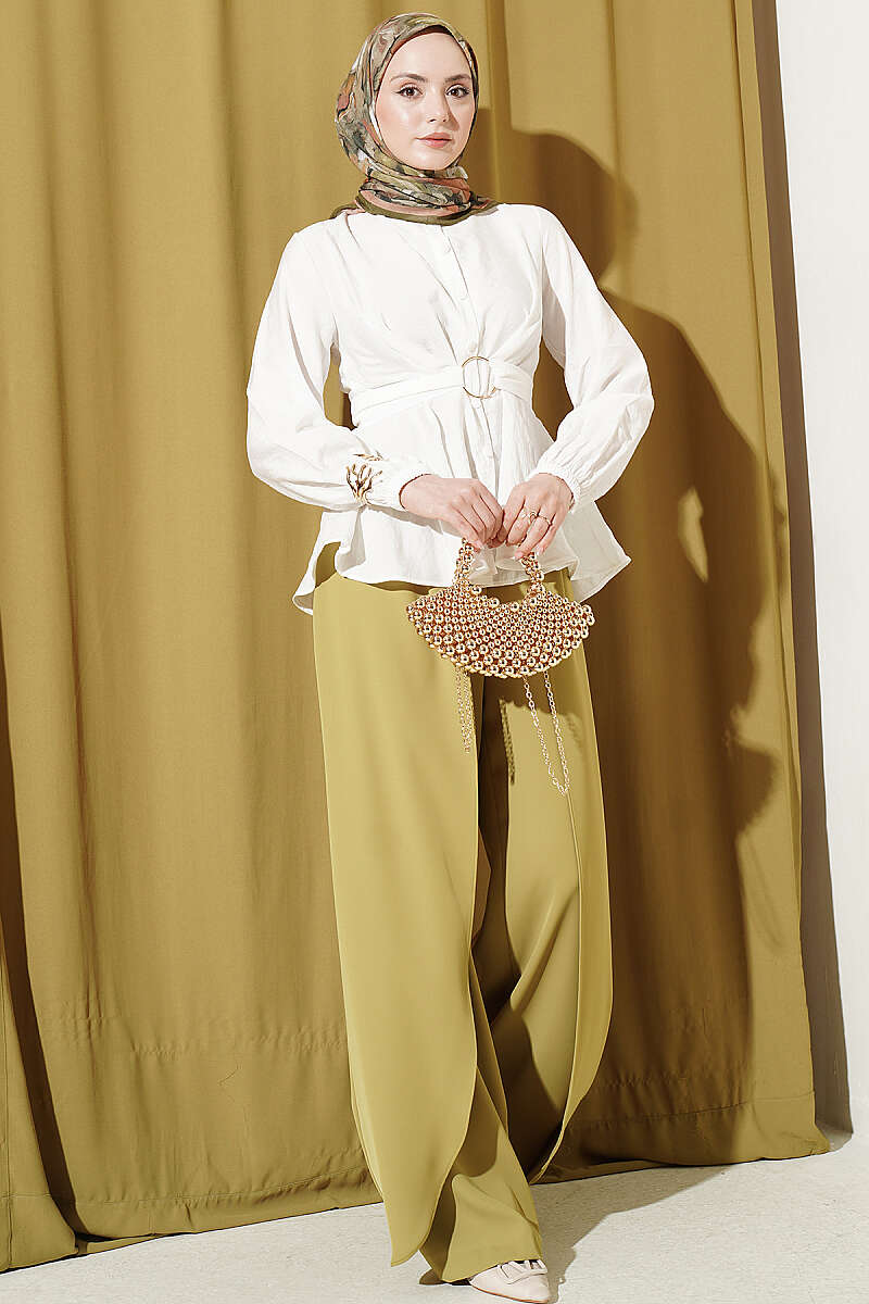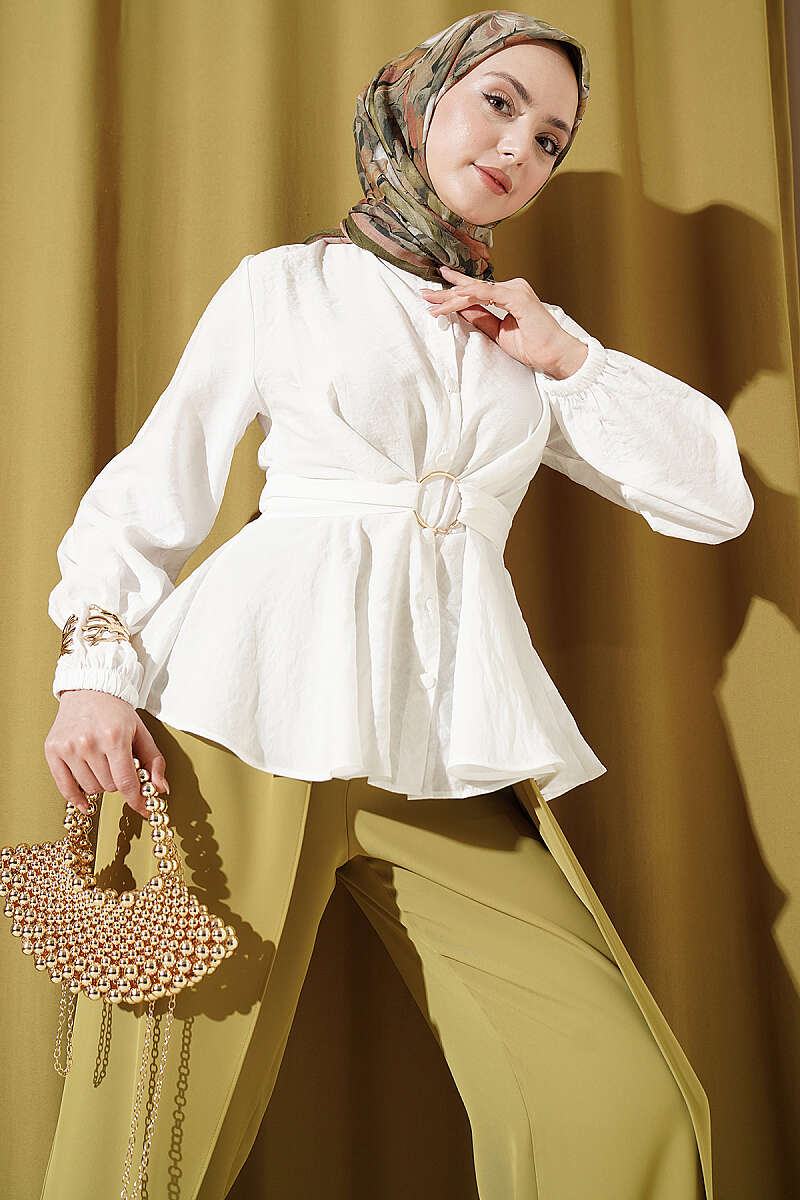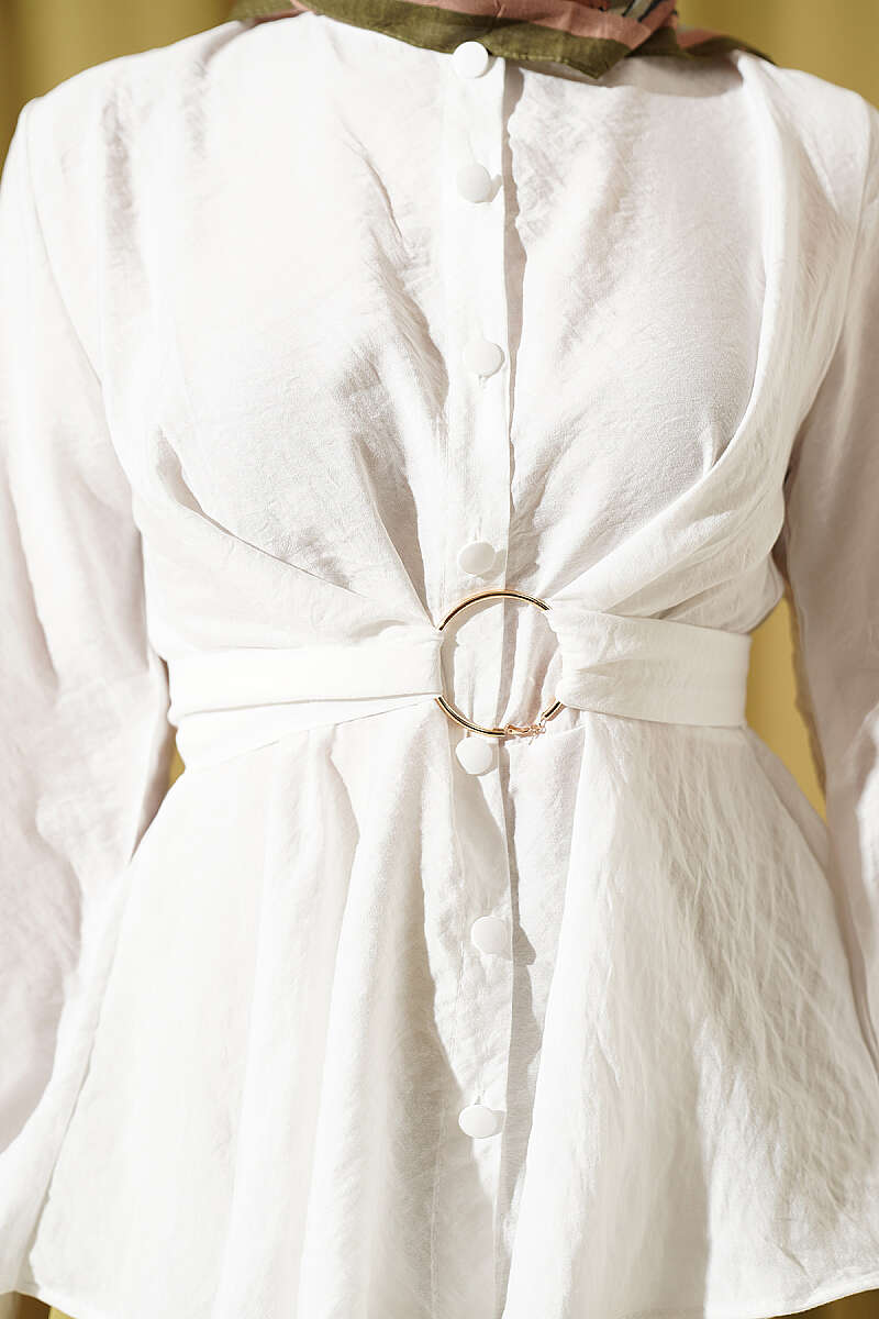 Kendinden Bağlamalı Kısa Gömlek Ekru
