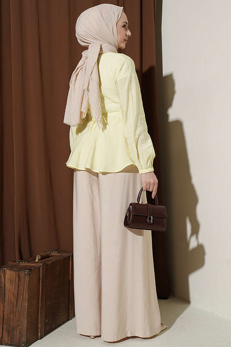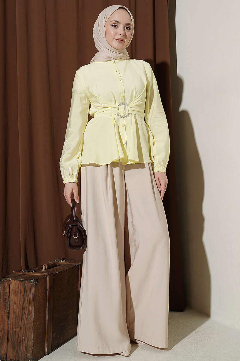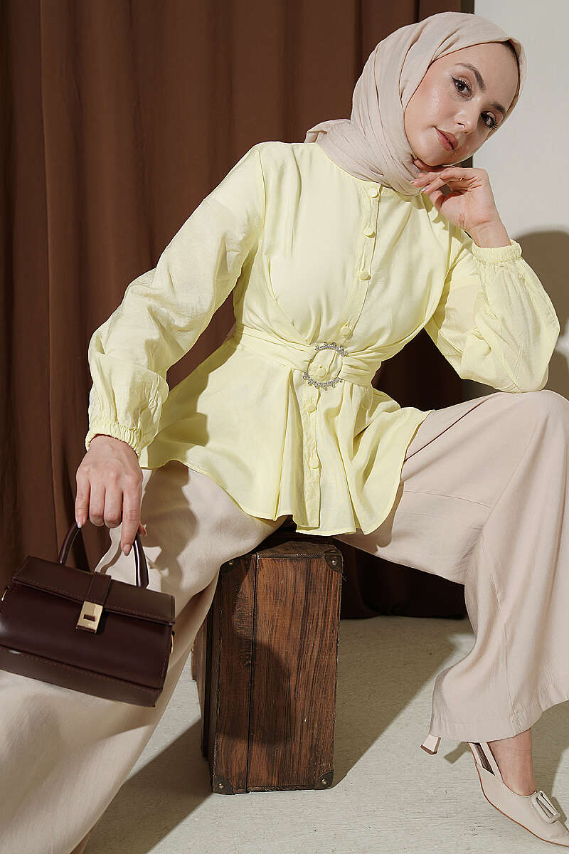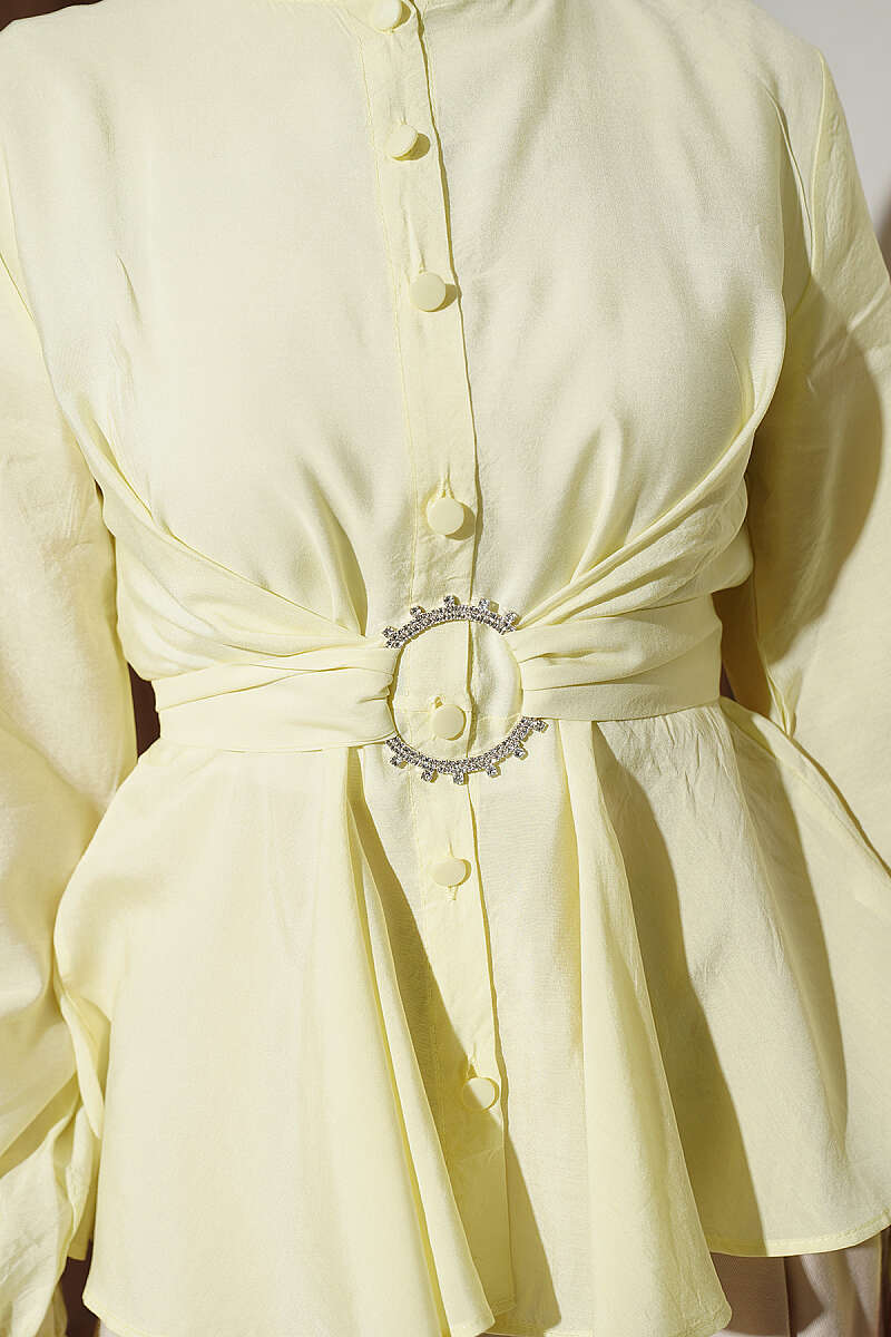 Kendinden Bağlamalı Kısa Gömlek Sarı