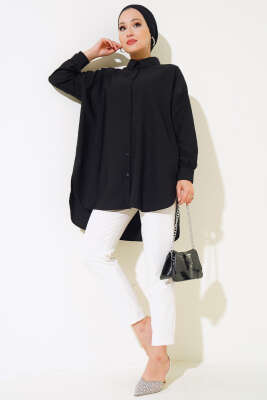 Gizli Düğmeli Bel Kuşaklı Gömlek Beyaz