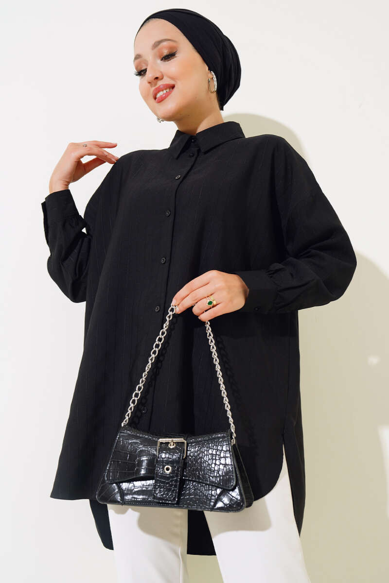 Gizli Düğmeli Bel Kuşaklı Gömlek Bordo