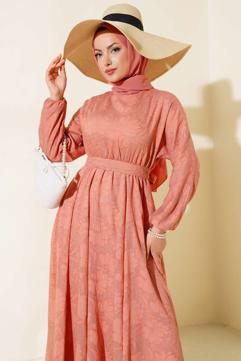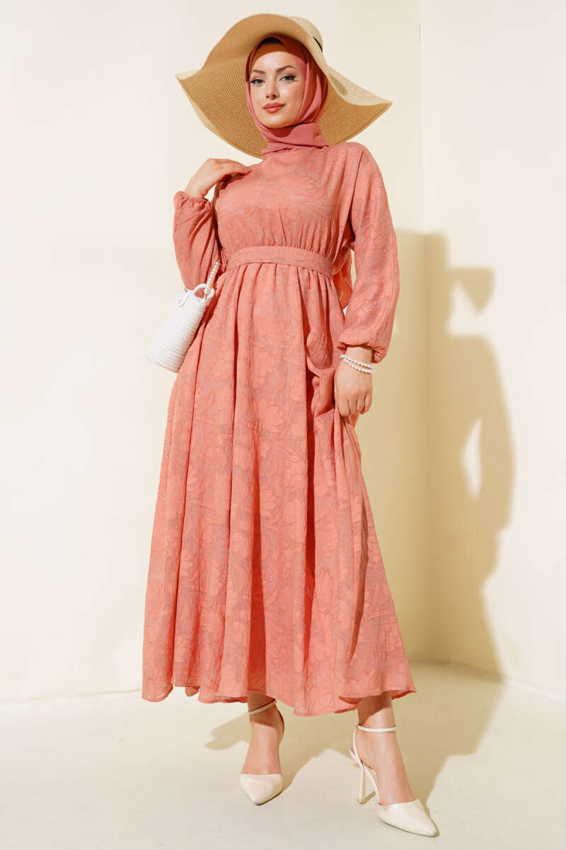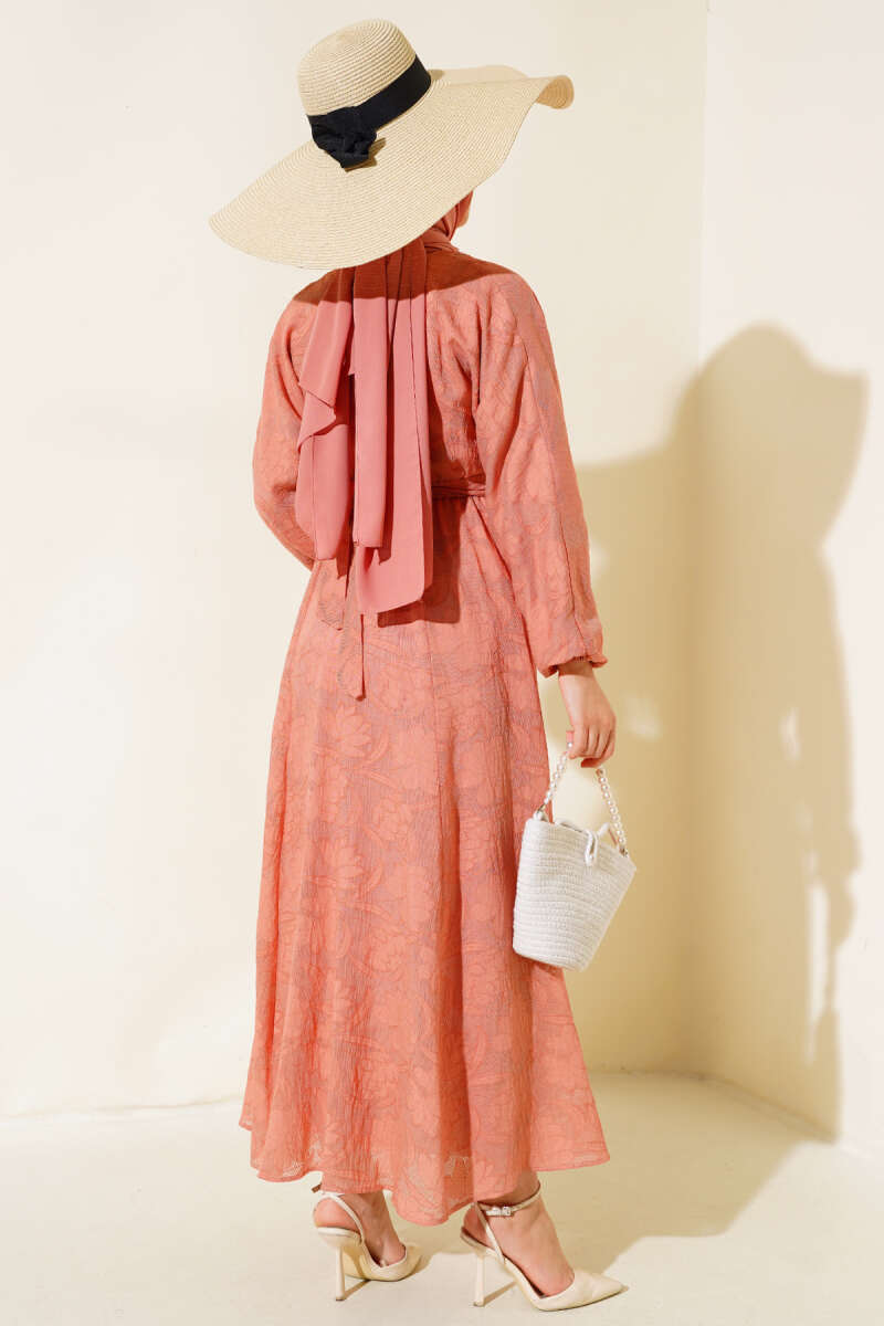 Kolları Fiyonk Detaylı Selanik Elbise Kahve