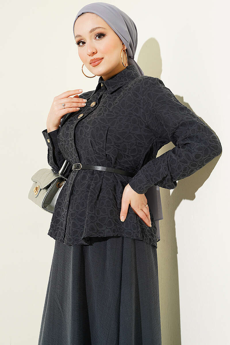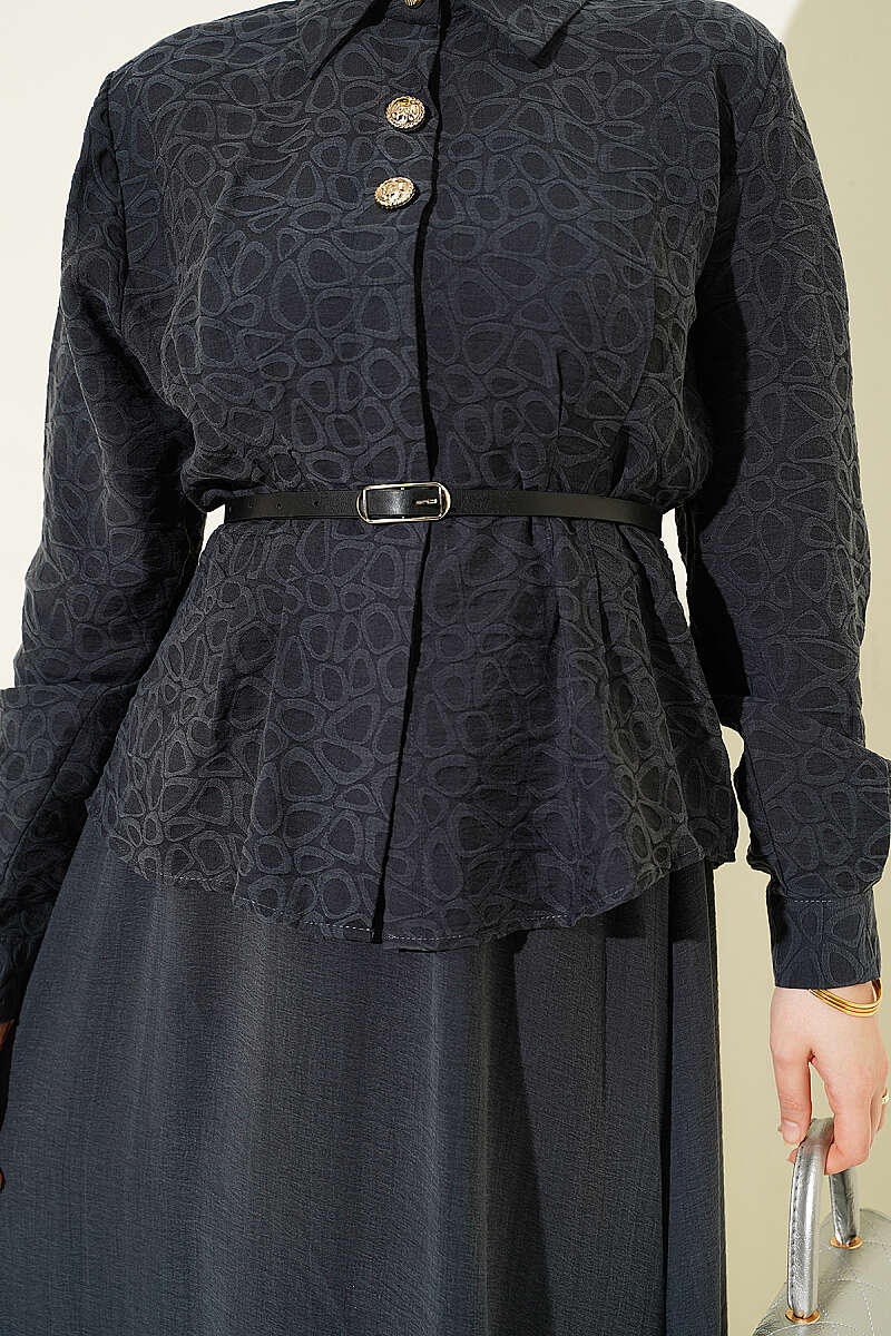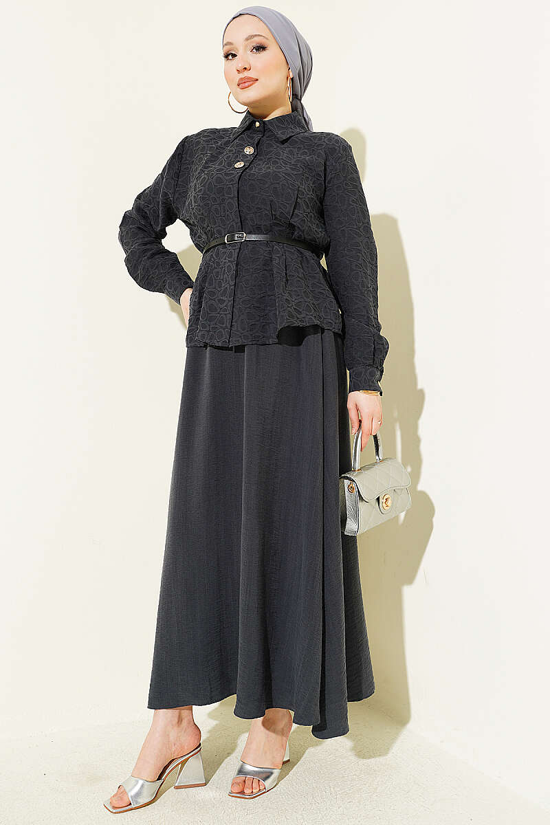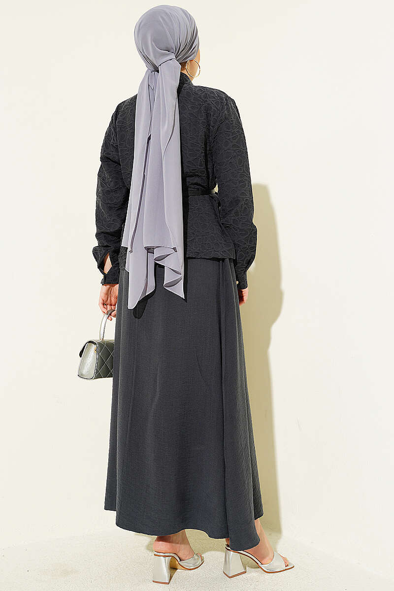 Kendinden Desenli Kemerli Tensel Etekli Takım Füme