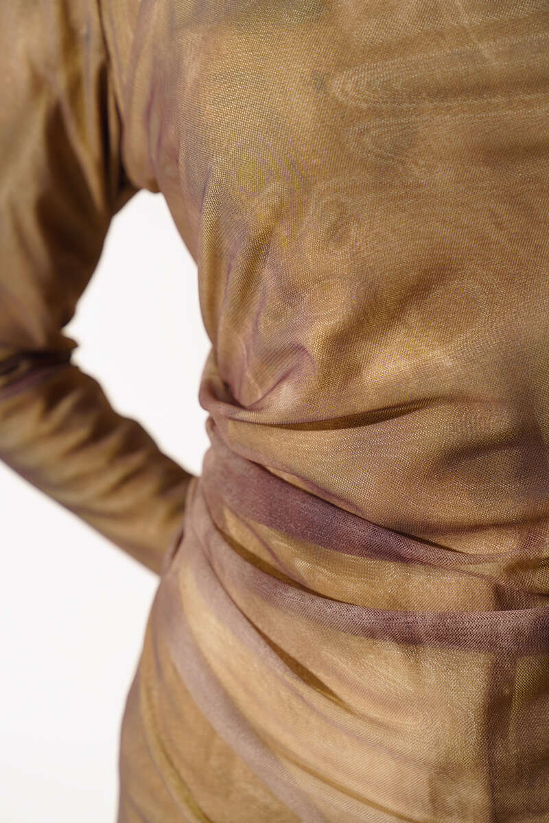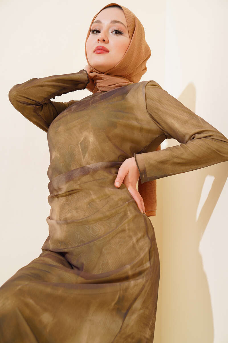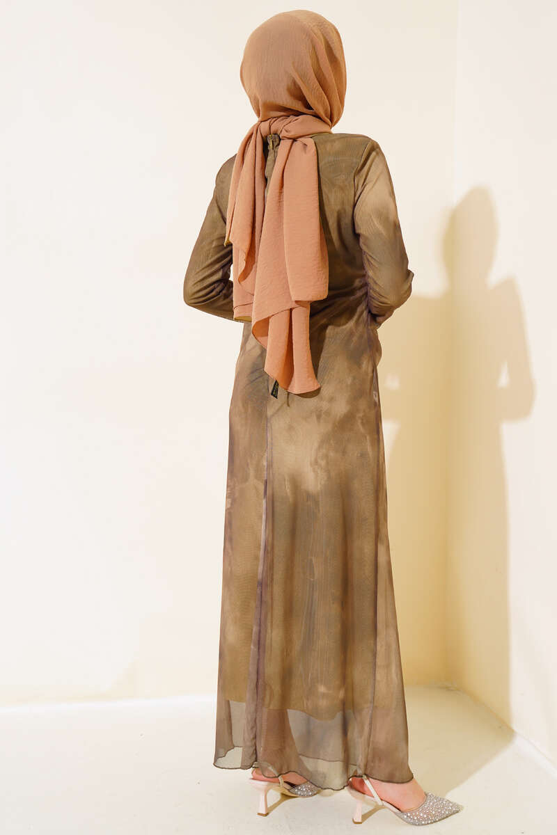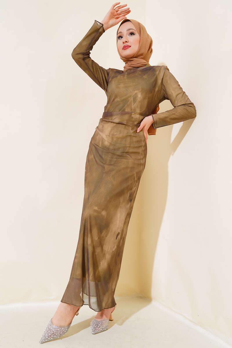 Kendinden Desenli Tül Elbise Vizon