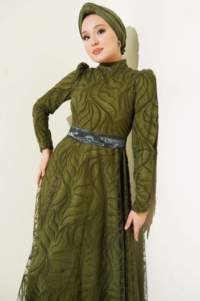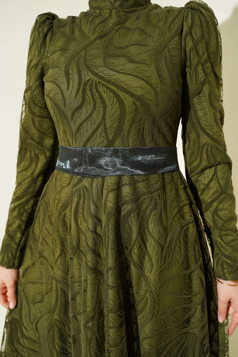 Loyşa İp Kuşaklı Duble Kol Elbise Haki