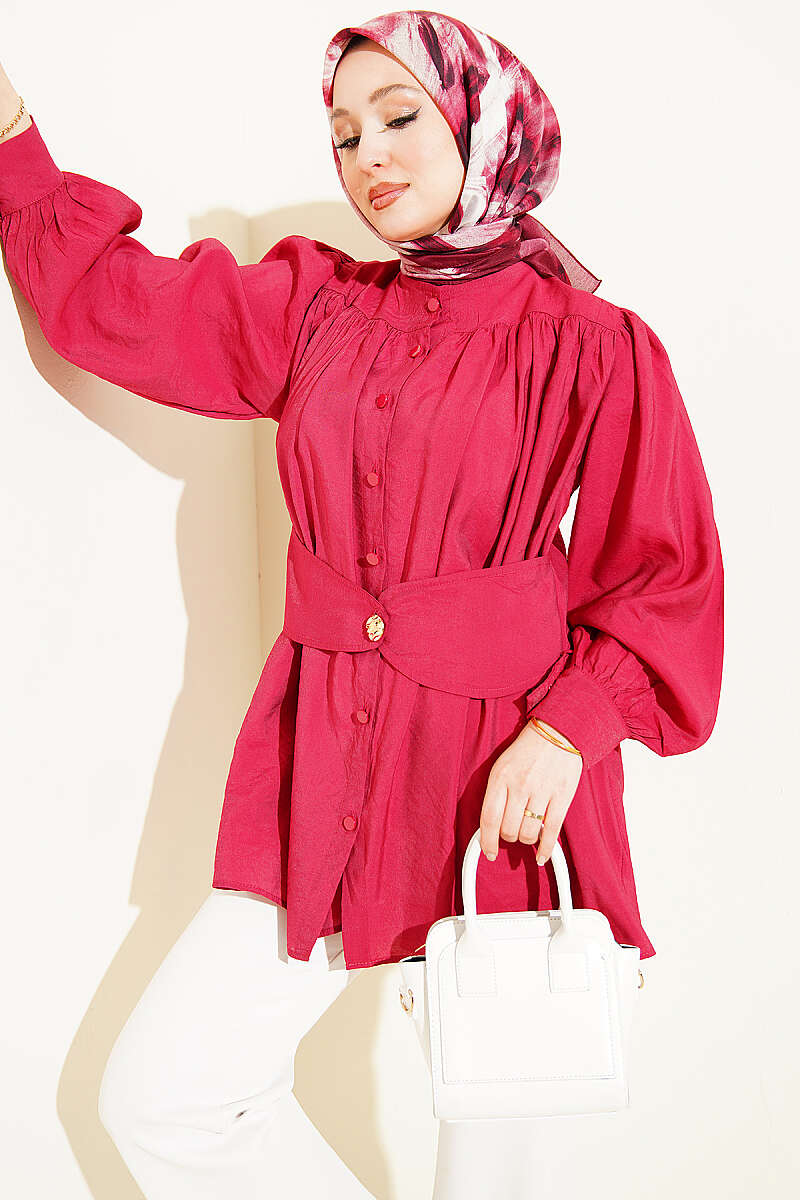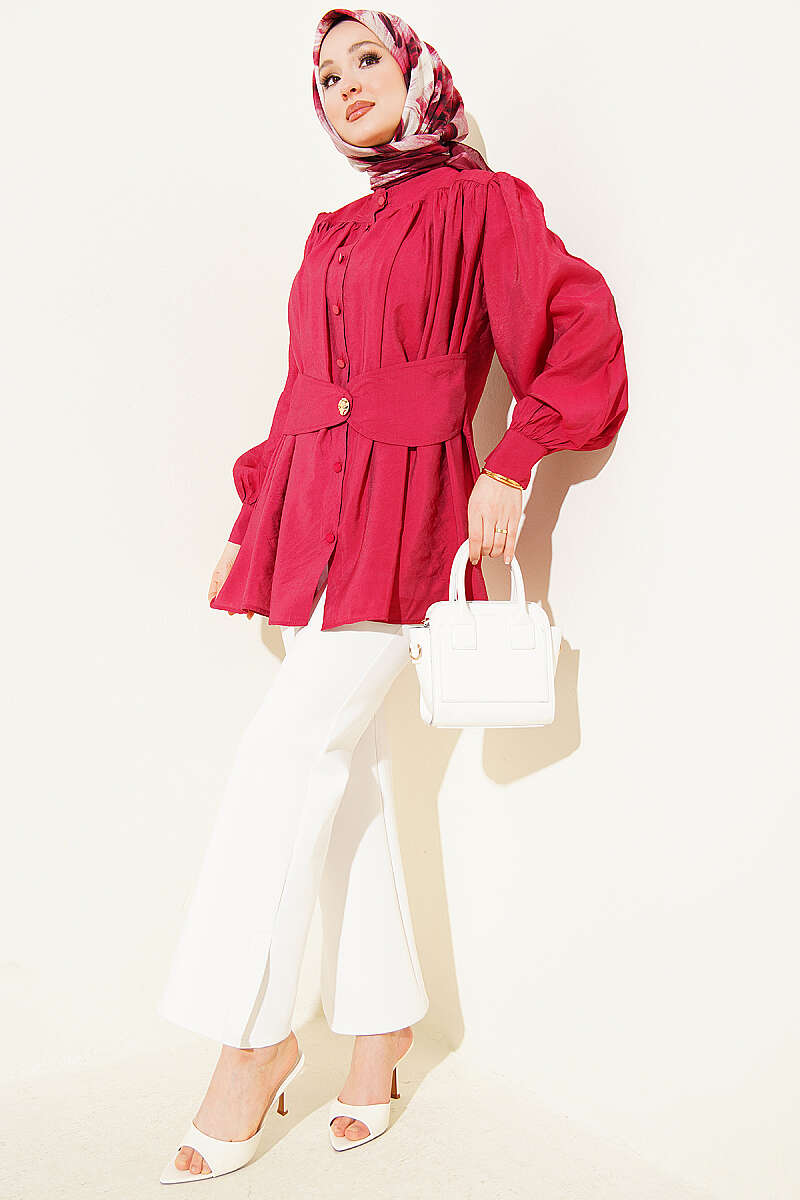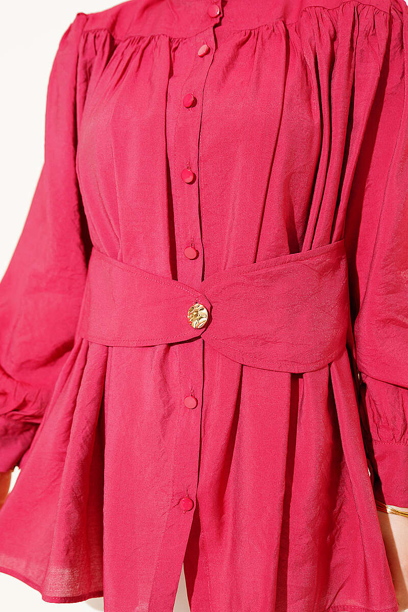 Kendinden Kemer Detaylı Gömlek Çağla Yeşili