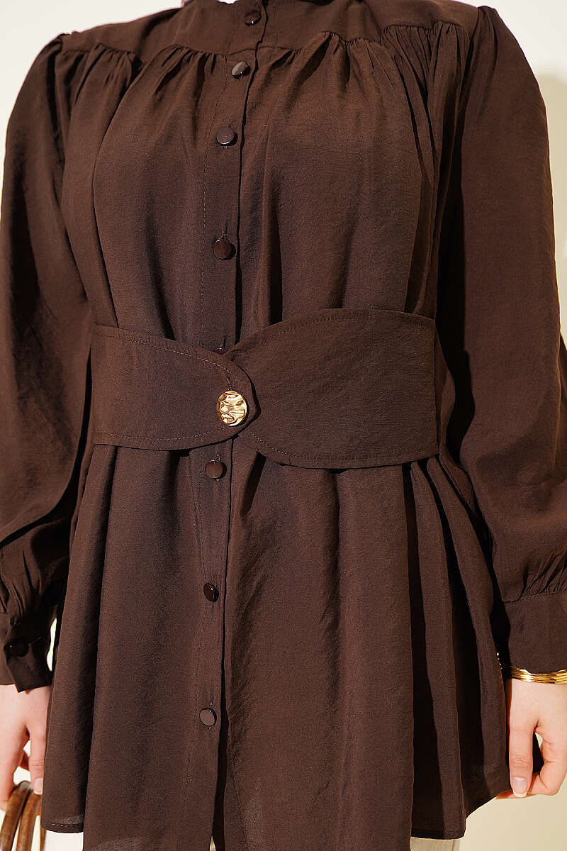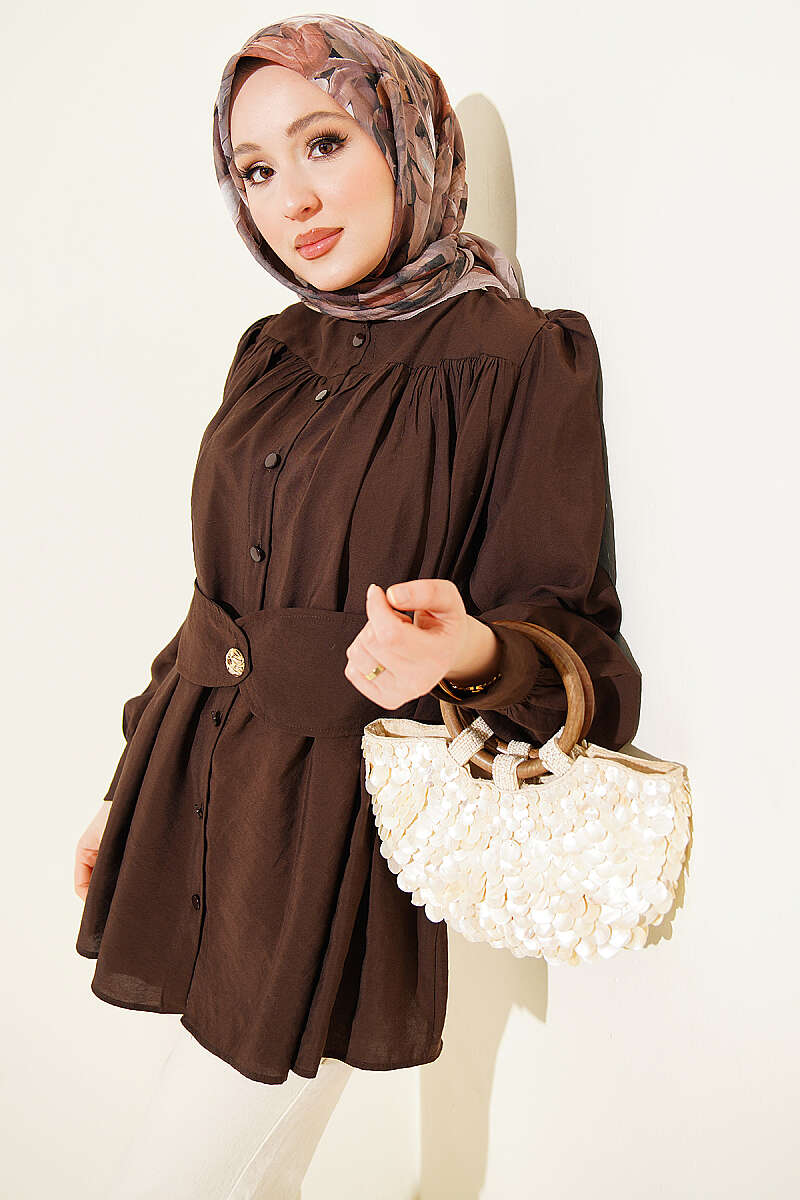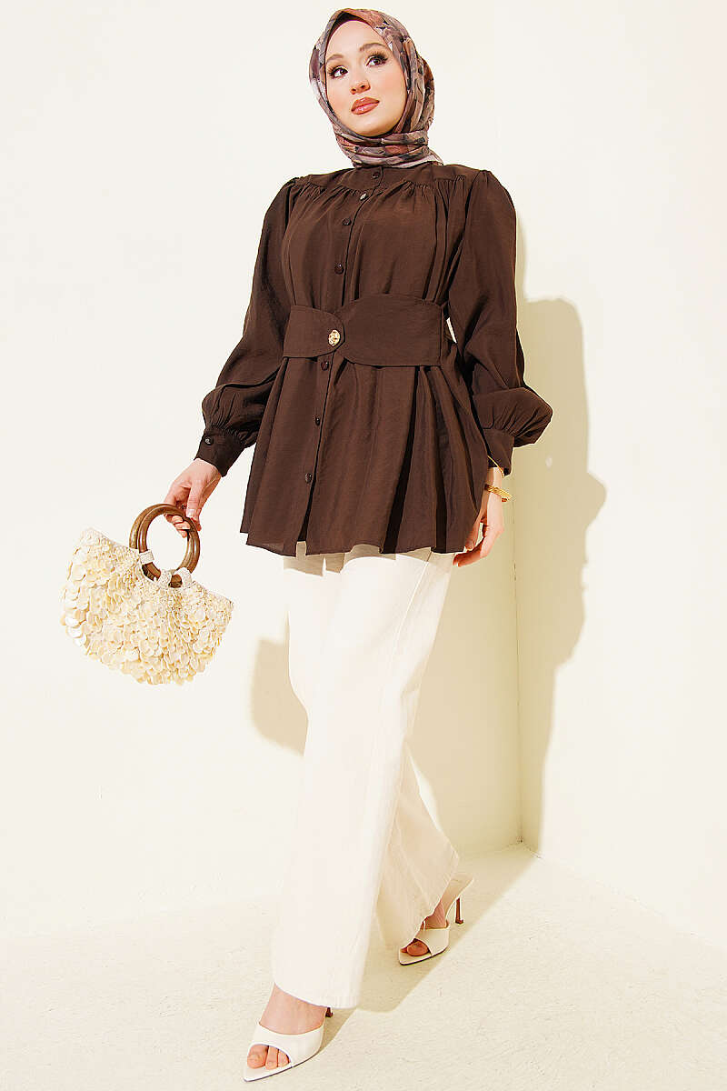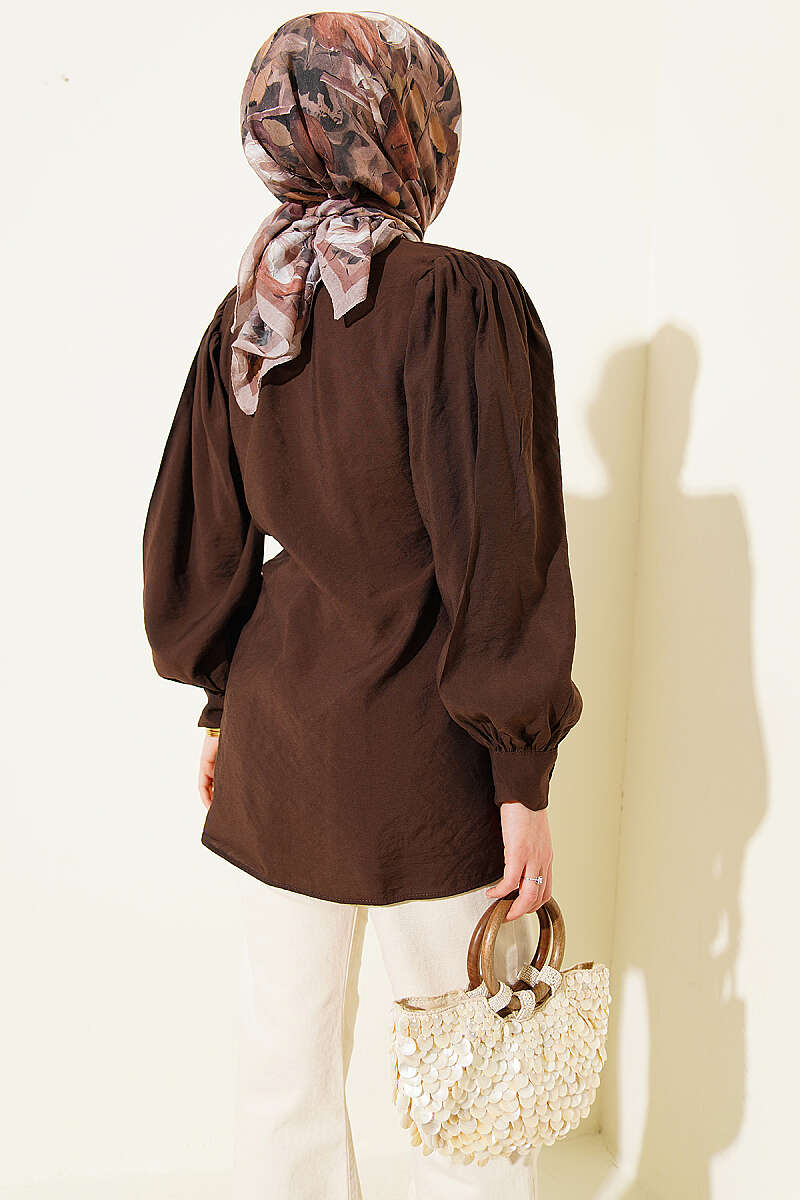 Bilek Fırfırlı Salaş Modal Gömlek Kahve
