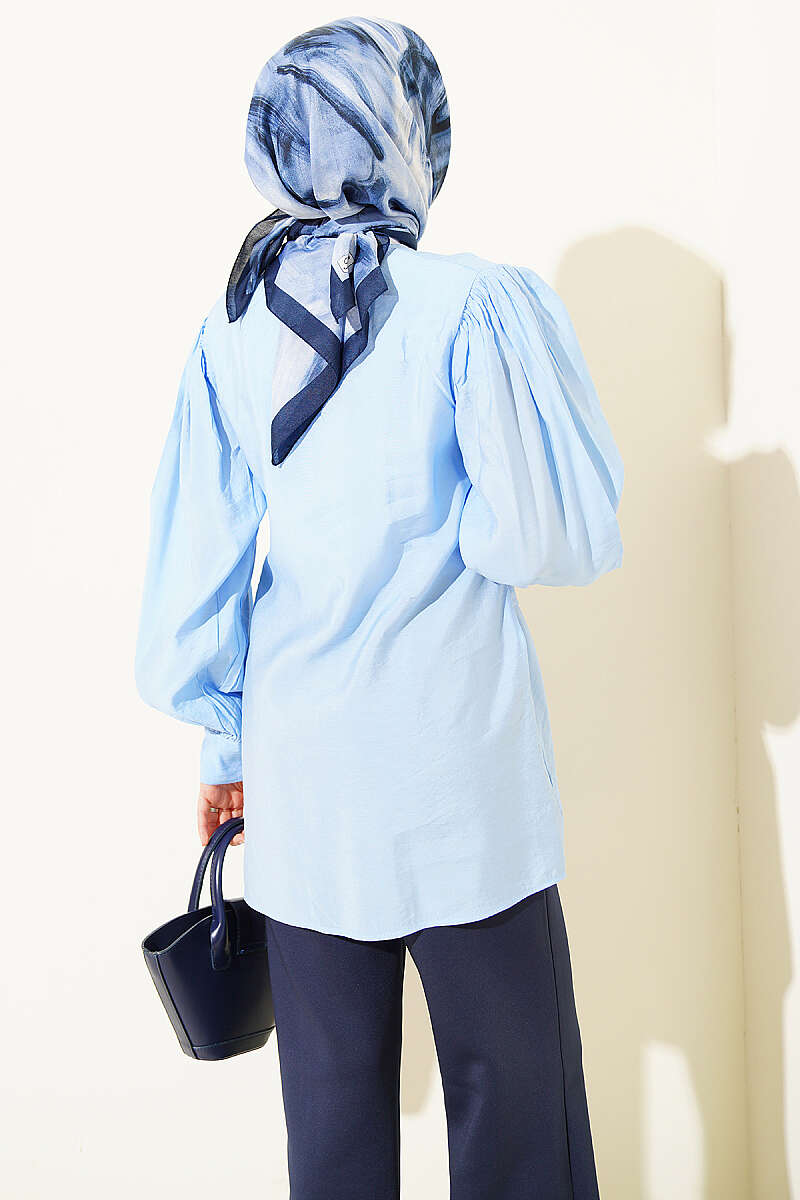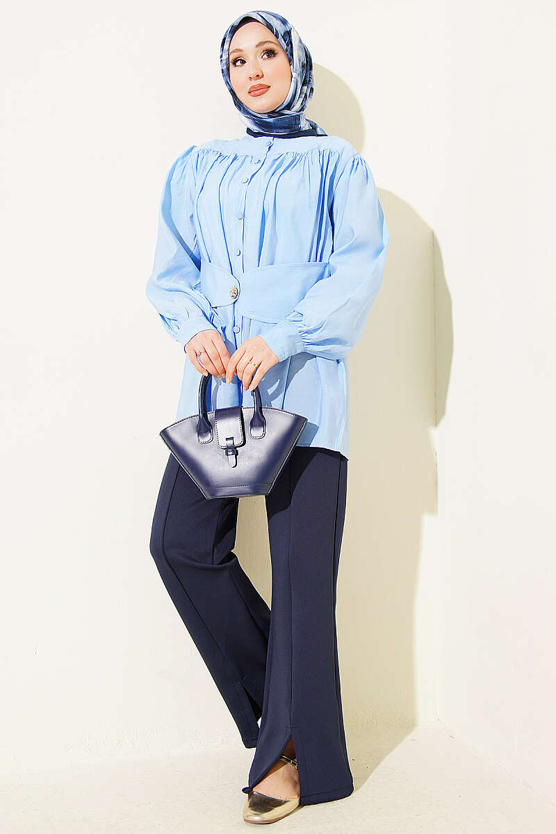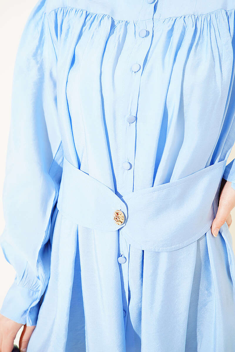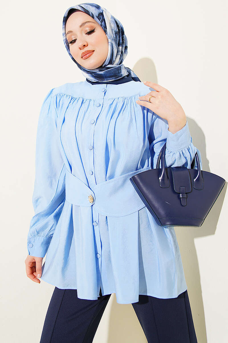 Kendinden Kemer Detaylı Gömlek Mavi