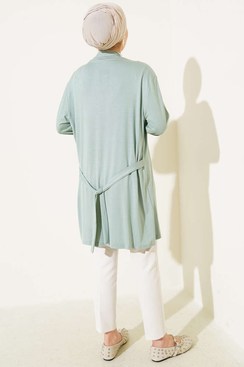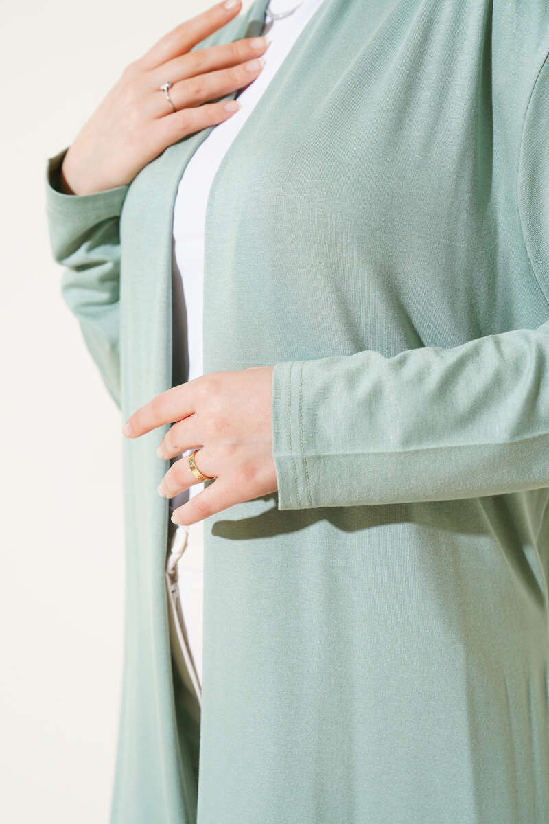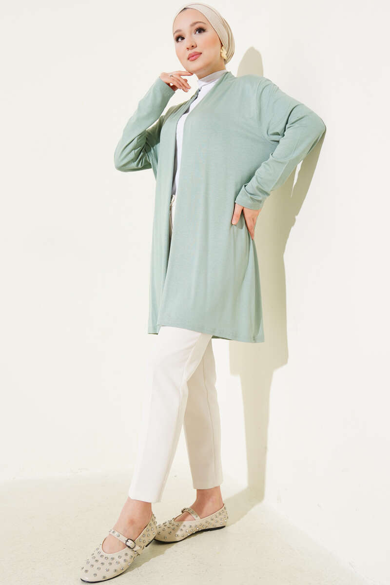 Yan Yırtmaçlı Yumoş Uzun Triko Tunik Yağ Yeşili